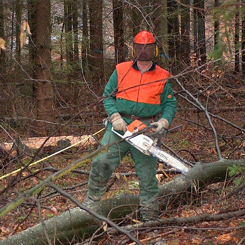 Uns geht die Arbeit nicht aus. Wenn neben Holzernte, Rücken und Läuterung noch Zeit bleibt, kümmern wir uns im Winter zum Beispiel darum, Kulturflächen für die Pflanzung vorzubereiten und Wertästung an stehenden Bäumen durchzuführen. Es gibt auch immer wichtige, begleitende Revierarbeiten, wie Wegebau, das Aufstellen von Bänken und Einrichtungen, Reparatur- und Instandhaltungsarbeiten. Unser Wald ist ja ein beliebtes Ausflugsziel und Erholungsgebiet.