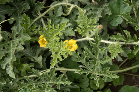 Die Koloquinte wurde und wird vor allem im Mittelmeergebiet, in Afrika und Indien als Heilpflanze angebaut. Man verwendet das getrocknete Fruchtfleisch. Ihre über einen Meter langen Pfahlwurzeln versorgen die Pflanze mit Wasser auch aus tieferen Bodenschichten. Gegen Ende Februar bildet sie ein bis zwei Meter lange am Boden liegende Triebe. Aus den Blattachseln wachsen schlanke Ranken mit hand- oder herzförmigen Blättern. Die Blüten haben einen glockigen Kelch mit radförmiger Krone. Von Oktober bis in den Februar hinein kann geerntet werden: Die kugelrunden Früchte sind etwas größer als Äpfel. Unreife sind grün, reife gelb mit grüner Maserung. Das helle Fruchtfleisch ist saftig, und seine Konsistenz ähnelt der von Wassermelonen. Es schmeckt aber unangenehm bitter.