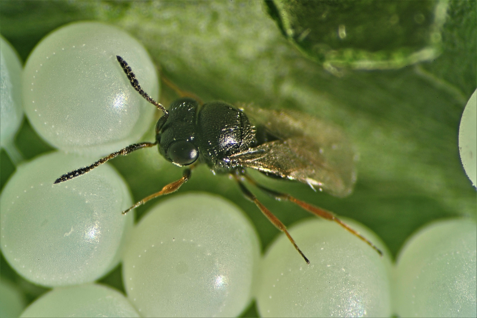 Seit einigen Jahren macht die Marmorierte Baumwanze Obst- und Gemüsebauern das Leben schwer. Da sie hierzulande keine natürlichen Feinde hat, gab es bisher kaum wirksame Strategien zu ihrer Bekämpfung. Nun wurde mit der Samuraiwespe ein natürlicher Gegenspieler in Deutschland entdeckt. Die Hoffnung ist groß, die schädliche Wanze dadurch ausrotten zu können.Mitarbeiter des Landwirtschaftlichen Technologiezentrums Augustenberg (LTZ) in Karlsruhe haben die aus Ostasien stammende Samuraiwespe im August 2020 erstmals in Deutschland nachgewiesen. Nach eigenen Angaben entdeckten sie die Wespenart mit dem wissenschaftlichen Namen Trissolcus japonicus in der Nähe von Heidelberg. Nun besteht die Hoffnung, den natürlichen Feind der Marmorierten Baumwanze in Zukunft als biologischen Schädlingsbekämpfer einsetzen zu können.
