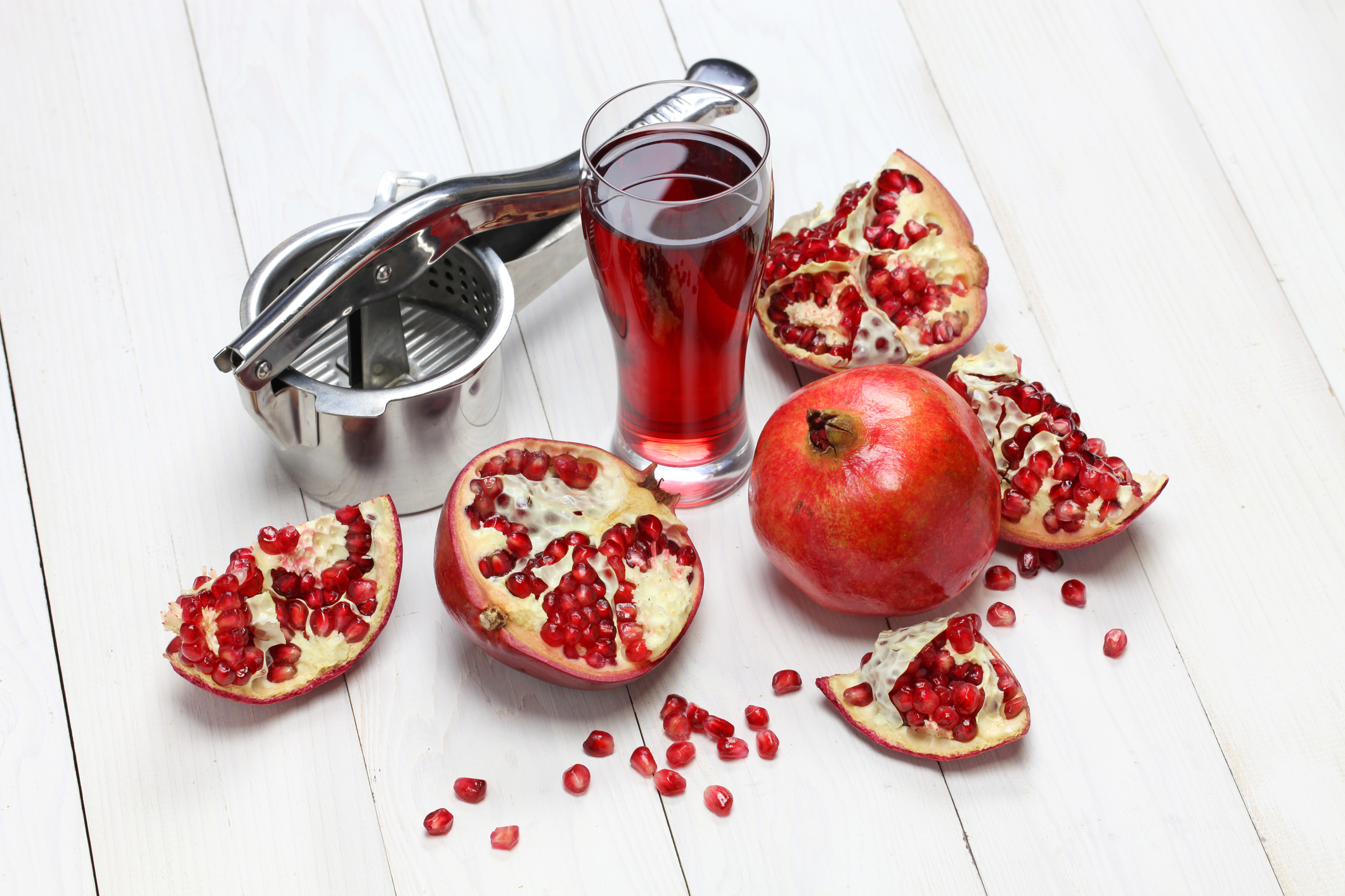 Granatäpfel reifen nach dem Ernten nicht nach, sie bleiben aber lange frisch, wenn die lederartige Haut heil ist. Die Früchte sollten vorsichtig geöffnet werden, da der Saft hartnäckige Flecken zum Beispiel auf der Kleidung hinterlässt. Mit einer hochwertigen Zitruspresse lässt sich der Saft gut gewinnen, die Frucht kann aber auch mit einem Löffel ausgelöffelt werden. Pasteurisierter Granatapfelsaft ist im Handel und auch über das Internet zu beziehen, doch reicht er im Geschmack nicht an den frisch gepressten Granatapfelsaft heran. Mit den Kernen lassen sich auch Salate und Desserts verfeinern. Granatäpfel sollten allerdings reif sein, sonst schmecken sie allzu säuerlich. Echter Grenadine-Sirup wird aus dem Saft von Granatäpfeln, Zucker und Wasser hergestellt. Tequila Sunrise, Shirley Temple oder Pink Lady heißen die roten Cocktails, die daraus gemacht werden. Heute werden meist Beerenmischungen mit Himbeeren, Johannisbeeren, Brombeeren oder Holunder zur Herstellung von Grenadine verwendet, bei minderwertiger Qualität sogar nur Farbstoffe und Aromen.