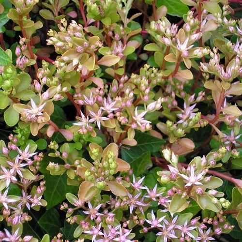 Sedum stoloniferum (ausläuferbildend) blüht von Mai bis September. Ihre Blüten sind rosafarben und sternchenförmig. Die Fetthenne wird auch bei uns von vielen Staudengärtnereien für Steingärten, Trockenmauern und vor allem auch für Dachbepflanzungen angeboten. Die Pflanze ist aus dem Kaukasus und Nord-Iran eingewandert. Sie hat rote, kriechende Stängel und ist eine enge Verwandte des bekannten gelb blühenden Mauerpfeffers (Sedum acre) aus der Familie der Dickblattgewächse. Unter günstigen Bedingungen, wie etwa an sonnigen Standorten, wächst die Pflanze jährlich um 20 Zentimeter. Trockenzeiten übersteht sie bestens. Sie bildet ein oberirdisches Geflecht, das sich auf Grasflächen stark ausbreitet. Für Landwirte bedeutet dies weniger Futterertrag. Ausreißen oder Pflügen helfen nicht: Die Bruchstücke der Pflanze bilden im Kontakt mit Erde sofort wieder Wurzeln und wachsen schnell weiter. Nur eine frühzeitige Bekämpfung verspricht Erfolg bei dieser Fetthenne, wo immer sie nicht erwünscht ist.