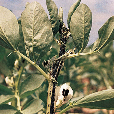 Krankheiten und Schädlinge können bei den Leguminosen hohe Verluste verursachen. So entstehen durch die Saugtätigkeit von Schwarzer Bohnenlaus und Erbsenblattlaus Wuchsstauchungen, zusätzlich übertragen sie Viren, die Krankheiten wie Mosaik- und Blattrollvirosen hervorrufen. Die Schwarze Bohnenlaus ist vor allem schädlich an Ackerbohnen (und Zuckerrüben). Weil sich die Jungtiere häufig in unmittelbarer Nähe des Muttertiers ansiedeln, entstehen dichte Kolonien, die sich langsam ausdehnen. Die Läuse saugen die Assimilate aus den Siebröhren von Stängeln, Blättern, Blüten und Früchten der Ackerbohne, bevorzugt junge Blätter und Blütenansätze. Damit fehlen den Pflanzen die von ihnen hergestellten Nährstoffe, die sie für ihr Wachstum benötigen. Übrigens überwintern die Läuse auf dem Pfaffenhütchen und dem Schneeball. Sommerwirte sind verschiedene krautige Pflanzen.