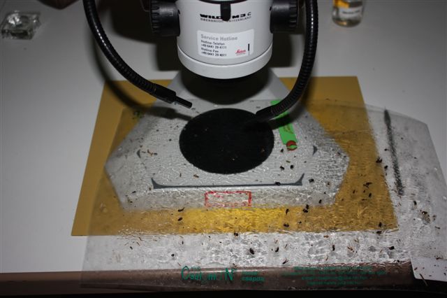 Sogar gefangene Käfer sind nur schwer zu erkennen. Je länger sie sich in der Falle befinden, desto dunkler werden sie und desto mehr verändern sie ihr Aussehen. Zudem handelt es sich bei den gefangenen Insekten meistens um männliche Käfer: Sie sind dunkler als die Weibchen, und die typischen gelben Streifen auf den Deckflügeln sind schlechter zu erkennen. Es sind die männlichen Käfer, die von Fallen angezogen werden, weil die leimbeschichteten Tafeln Sexuallockstoffe (Pheromone) enthalten. Käfer, die diesen Reizen nicht widerstehen können, bleiben am Leim der Fallen kleben. Da je nach Standort, Fauna und Wind auch andere Insekten an den Leimtafeln hängenbleiben, ist es oft sehr schwierig, die Käfer zu identifizieren. Alle Käferfunde werden im Labor des Pflanzenschutzdienstes nochmals untersucht.