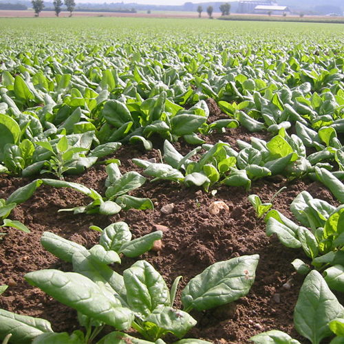 Schließlich kann die Erntemaschine nicht zwischen Spinat und unerwünschter Begleitflora wie Ehrenpreis und dem Parasit Teufelszwirn unterscheiden. Vor der Saat halten Landwirte die Unkräuter durch eine gründliche Bearbeitung des Bodens in Schach. Nach der Spinatsaat setzen sie gegebenenfalls gezielt schnell abbaubare Pflanzenschutzmittel gegen die vorherrschenden Arten ein.