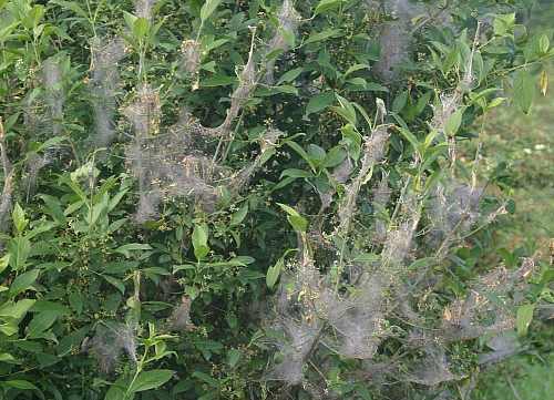 Gespenstische „Kunstwerke“: Gespinstmotten verwandeln Bäume und Sträucher