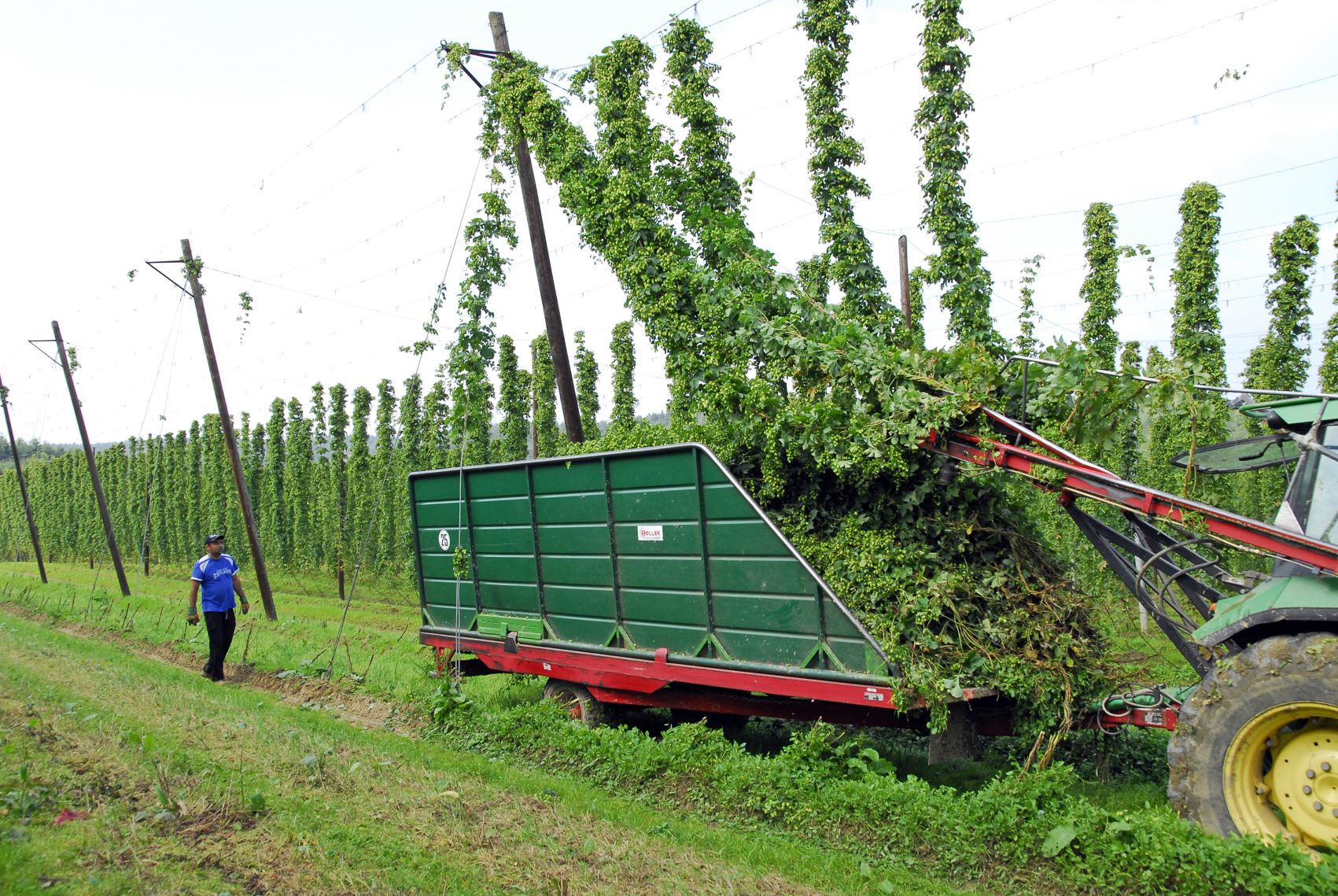 Die Experten sind optimistisch. Pilzkrankheiten wie Mehltau und Peronospora und Schadinsekten wie Blattläuse und Rote Spinne haben dieses Jahr keine Rolle gespielt. Das liegt an der Jahreswitterung, an der Sortenwahl und am gezielten Pflanzenschutz. Die modernen Geräte erreichen mit ihrem Gebläse auch die Spitzen der 7 Meter hoch rankenden Pflanzen. Gesunde Dolden tragen zu einer guten Qualität und hohen Erträgen bei. Ich bin schon ganz gespannt auf die diesjährige Ernte.