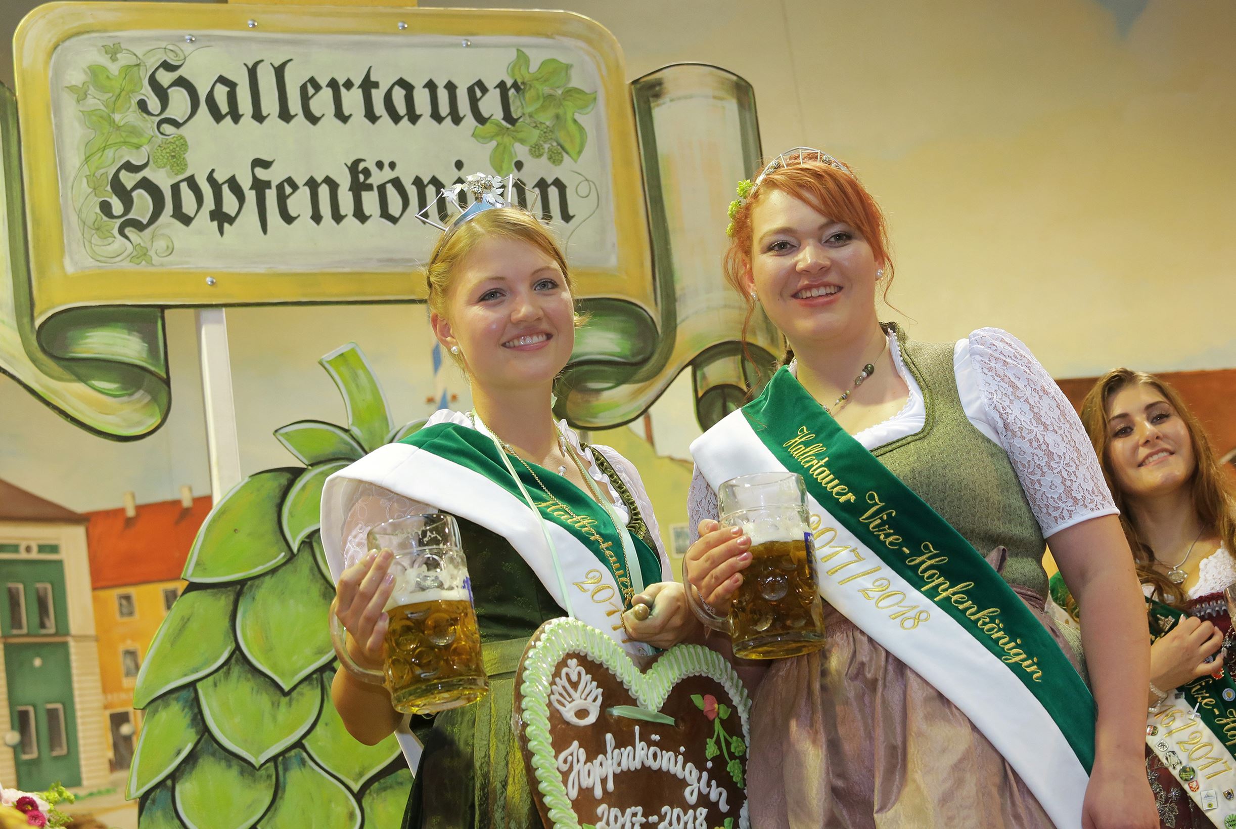 Die vom Hopfenpflanzerverband Hallertau organisierte Wahl fand im Rahmen des Wolnzacher Volksfests im August 2017 statt. Wir Bewerberinnen mussten eine Rede halten und uns den Fragen des Moderators stellen. Die Besucher der Veranstaltung haben sich dann für mich entschieden. Damit wurde ich zur Hallertauer Hopfenkönigin 2017/2018 gewählt. Mir zur Seite stand Vize-Königin Katharina Schinagl. Auch die anderen Anbaugebiete Elbe-Saale, Tettnang, Spalt und Bitburg haben ihre Königinnen. Sie sind flächenmäßig jedoch sehr viel kleiner. Deswegen vertrat ich sie auch bei Terminen des Verbands Deutscher Hopfenpflanzer e. V. im Ausland.