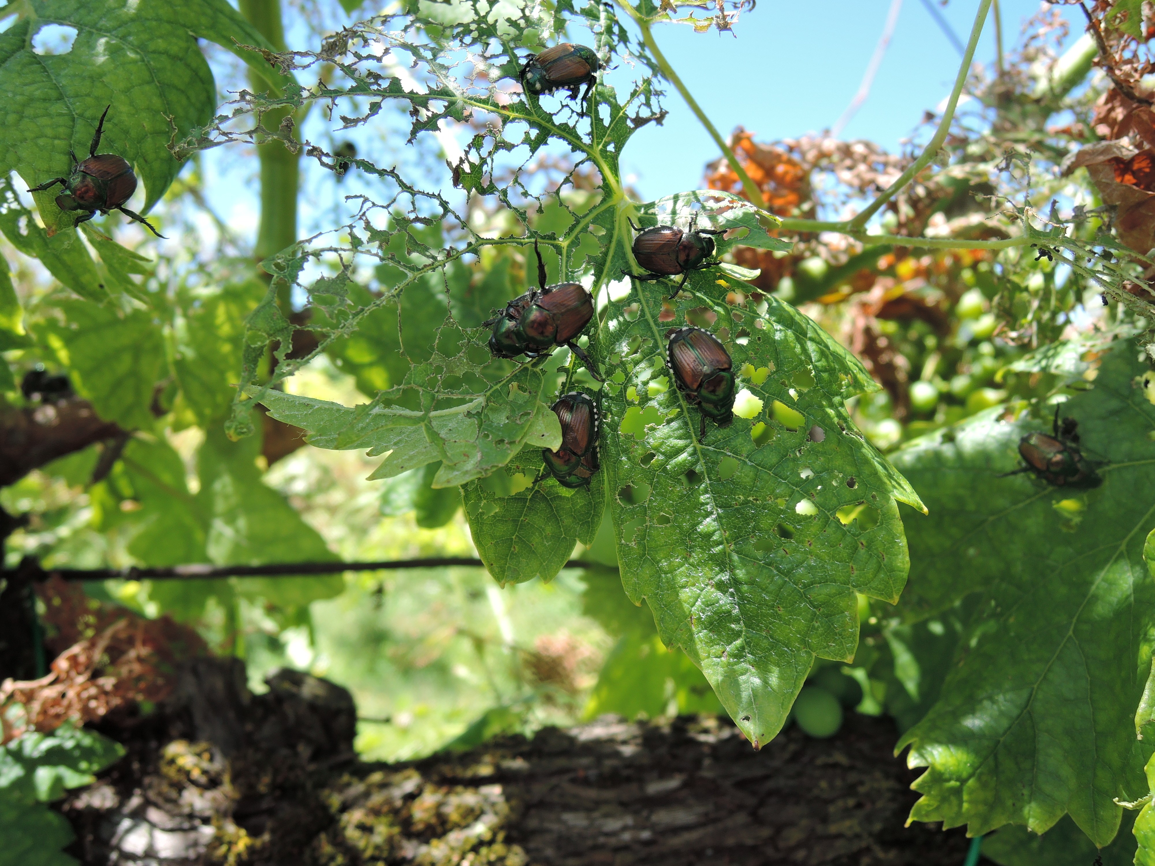Japankäfer richten große Schäden an, zum einen durch die Engerlinge im Boden, die Gras- und Rasenflächen schädigen, zum anderen durch den Fraß von Blättern, Früchten und Blüten an vielen Kulturen. Die Schäden können bis zum Kahlfraß gehen. Wenn man den Japankäfer bekämpfen will, muss man ihn rechtzeitig entdecken, denn wenn er sich bei uns erst einmal niedergelassen hat, ist er nur schwer zu bekämpfen. Pheromonfallen mit für ihn attraktiven Sexual- oder Pflanzenwirkstoffen sind eine gute Möglichkeit, das Auftreten frühzeitig festzustellen, doch zur Bekämpfung bei großem Auftreten taugen sie nicht.