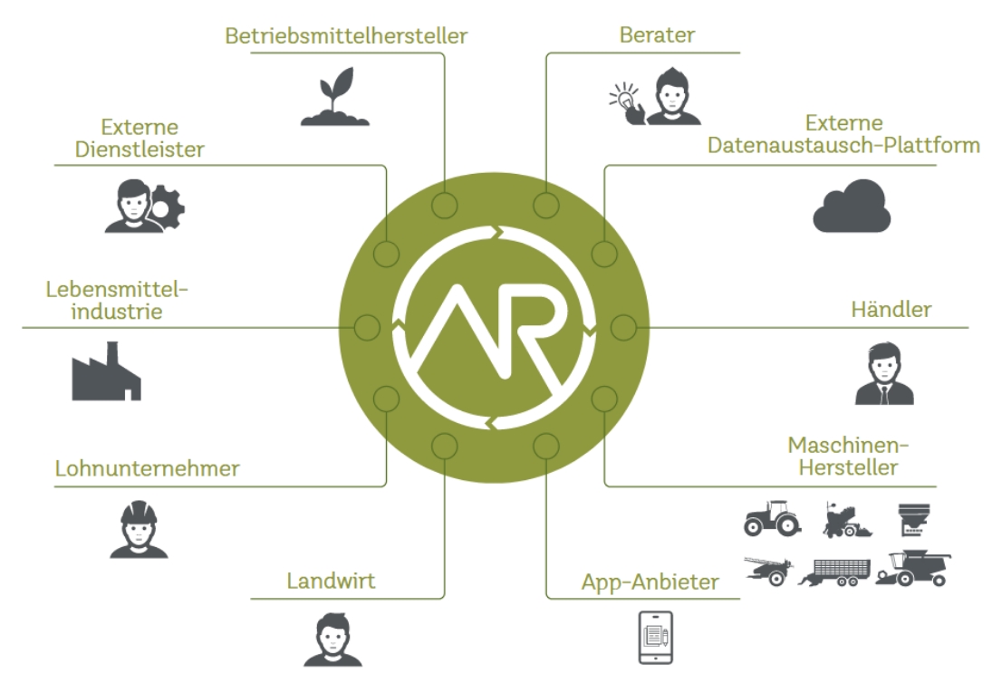 Die Daten müssen nun von seinem Bürorechner an das Universal-Terminal übermittelt werden. Statt eines USB-Sticks nutzt der Rheinländer nun eine ebenso herstellerübergreifend entwickelte virtuelle Datendrehscheibe. Diese konvertiert die Daten in ein Format, das vom Traktor-Terminal erkannt wird. Das Terminal holt sich die Anweisungen mittels SIM-Karte von der Drehscheibe und steuert damit den Düngerstreuer. Der bringt an jeder Stelle des Ackers genau so viel Dünger wie vorgegeben aus. Ein Mensch könnte das niemals so schnell und exakt steuern.