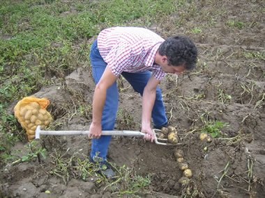 Sind Kartoffellaub und Unkräuter durch die Abreifebehandlung abgestorben, erleichtert dies auch die Ernte. Ohne Bewuchs trocknen die Kartoffeldämme schneller ab. So lässt sich besonders in feuchten Jahren die Erde leicht absieben – die Knollen kommen sauberer aus dem Boden.