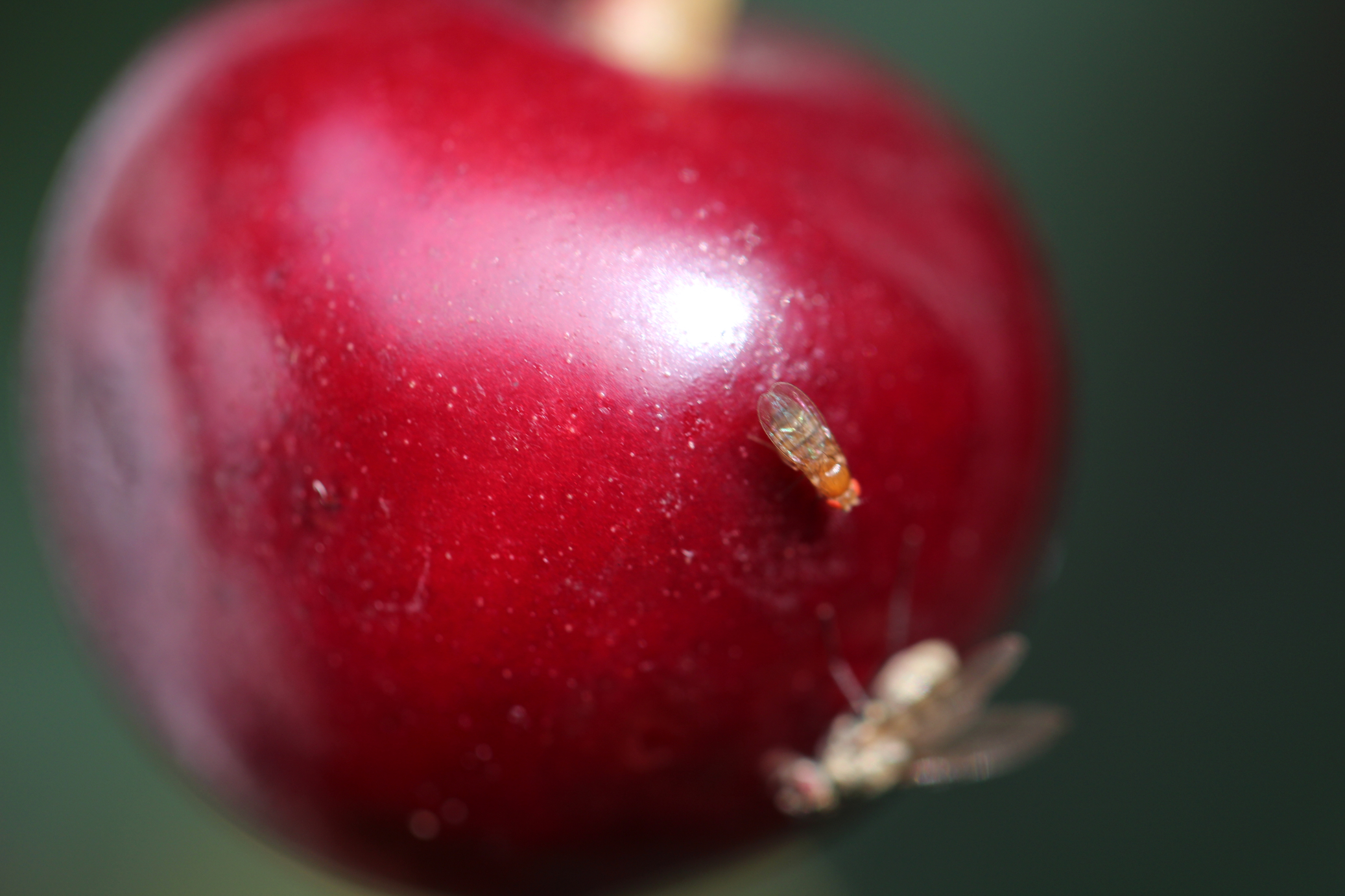 Nach dem milden Winter und dem ihr offenbar angenehmen Witterungsverlauf des Jahres 2014 hat die Kirschessigfliege (Drosophila suzukii) leichtes Spiel, wenn sie in großer Anzahl Kirschen, Himbeeren, Brombeeren sowie Erdbeeren befällt und auch Appetit auf Weintrauben und Zwetschgen entwickelt. Ihre Ausbreitung nach Norden mit regionalen Schwerpunkten hält unvermindert an, während wirksame Gegenstrategien gesucht werden. Im Markgräflerland greifen jetzt sogar Öko-Winzer zum Köder-Insektizid.Essig- und Fruchtfliegen schweben durch jede Küche, in der Obst, Fruchtsäfte oder Wein gelagert werden. So ist es auch im Garten und im Obstanbau. Zu diesen lästigen, aber harmlosen kleinen Brummern hat sich aber neuerdings mit der Kirschessigfliege eine gefährliche Verwandtschaft gesellt. Der aus Asien stammende, erschreckend vermehrungsfreudige Schädling aus dem Süden ist mittlerweile bis nach Hessen vorgedrungen, wie das Gießener Regierungspräsidium meldet. „Vor allem Brombeeren zeigen den typischen Befall“, berichtet Christoph Hoyer vom dortigen Pflanzenschutzdezernat.