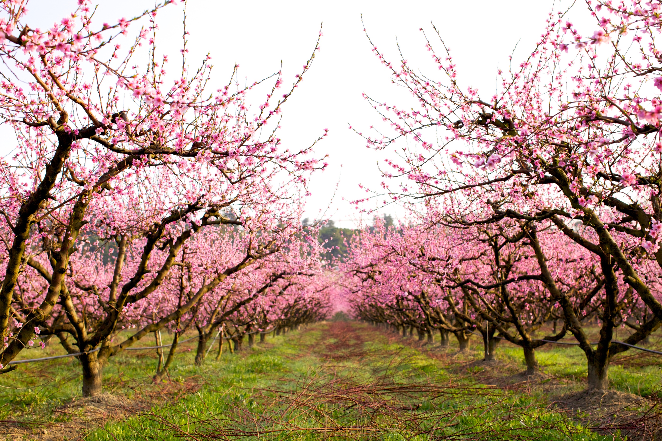 Pfirsiche (Prunus Persica) gehören zur Gattung Prunus und zur Familie der Rosengewächse. Die Früchte zählen als Steinobst, zu dem auch Kirsche, Nektarine oder Aprikose gehören. Wenn der Pfirsich blüht, ergibt sich ein rötliches bis gelbes Farbenmeer. In Mitteleuropa ist die Blütezeit nicht wie in Japan im März, sondern Mitte April. Die glockigen Pfirsichblüten sind sehr kurz gestielt, ihr Durchmesser umfasst etwa 3 Zentimeter. Pfirsichblüten sind zwittrig, das heißt, sie haben männliche und weibliche Erbanlagen. Die fünf Kelchblätter sind an ihrer Außenseite behaart. Die rosafarbenen Kronblätter sind oval und ganzrandig. In der traditionellen Volksheilkunde werden nicht nur die Früchte, sondern auch die Blätter, Blüten und Rinde des Pfirsichbaums verwendet.