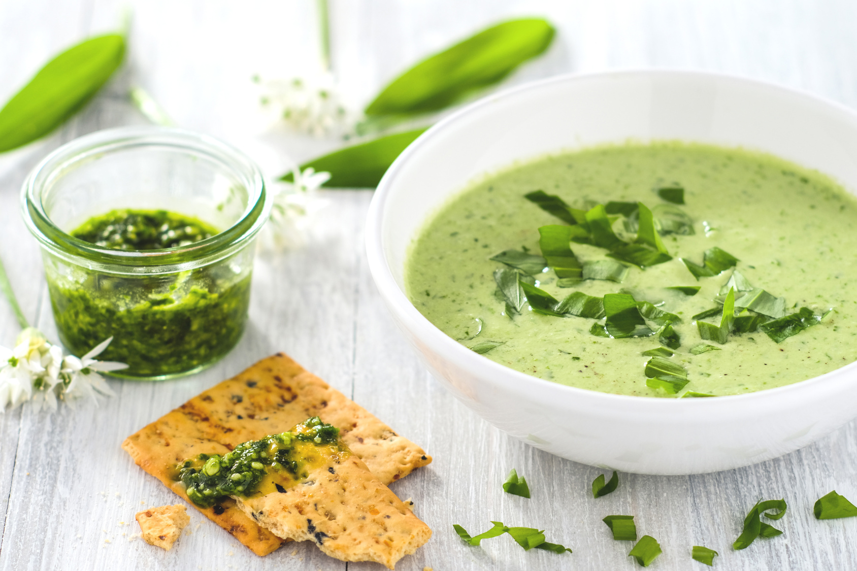 Allium ursinum, Bären-Lauch, so heißt der Bärlauch mit seinem lateinischen Namen. Woher aber der Bär in seinem Namen kommt, ist nicht genau bekannt. Das grüne Blattgemüse aus dem Wald riecht ähnlich wie Knoblauch, ist aber nicht ganz so scharf. Jetzt hat der Bärlauch gerade wieder Saison und erfreut Genießer mit seinem frisch-würzigen Geschmack.Bärlauch-Pesto, Bärlauch-Butter oder Bärlauch-Frischkäse, die Liste der leckeren Bärlauch-Gerichte ist lang. Seit einigen Jahren erlebt das Blattgemüse geradezu eine Renaissance und erfreut sich zunehmender Beliebtheit. Wir können ihn daher in der Saison von März bis Mai immer häufiger im Handel kaufen. Bärlauch schmeckt vielen Menschen und ist dabei auch noch gesundheitlich wertvoll. Die schwefelhaltigen ätherischen Öle regen den Stoffwechsel an und werden in der Hausmedizin als probates Mittel gegen Verdauungsstörungen wie Blähungen, aber auch gegen Bluthochdruck, Herzkrankheiten und Arteriosklerose angewendet, da Bärlauch den Cholesterinspiegel senken kann. Im Vergleich zu seinem berühmten Vetter, dem Knoblauch enthält Bärlauch weniger Geruchsstoffe, dafür aber in den Blättern, die wir ja essen, mehr Chlorophyll, das geruchshemmend wirkt.