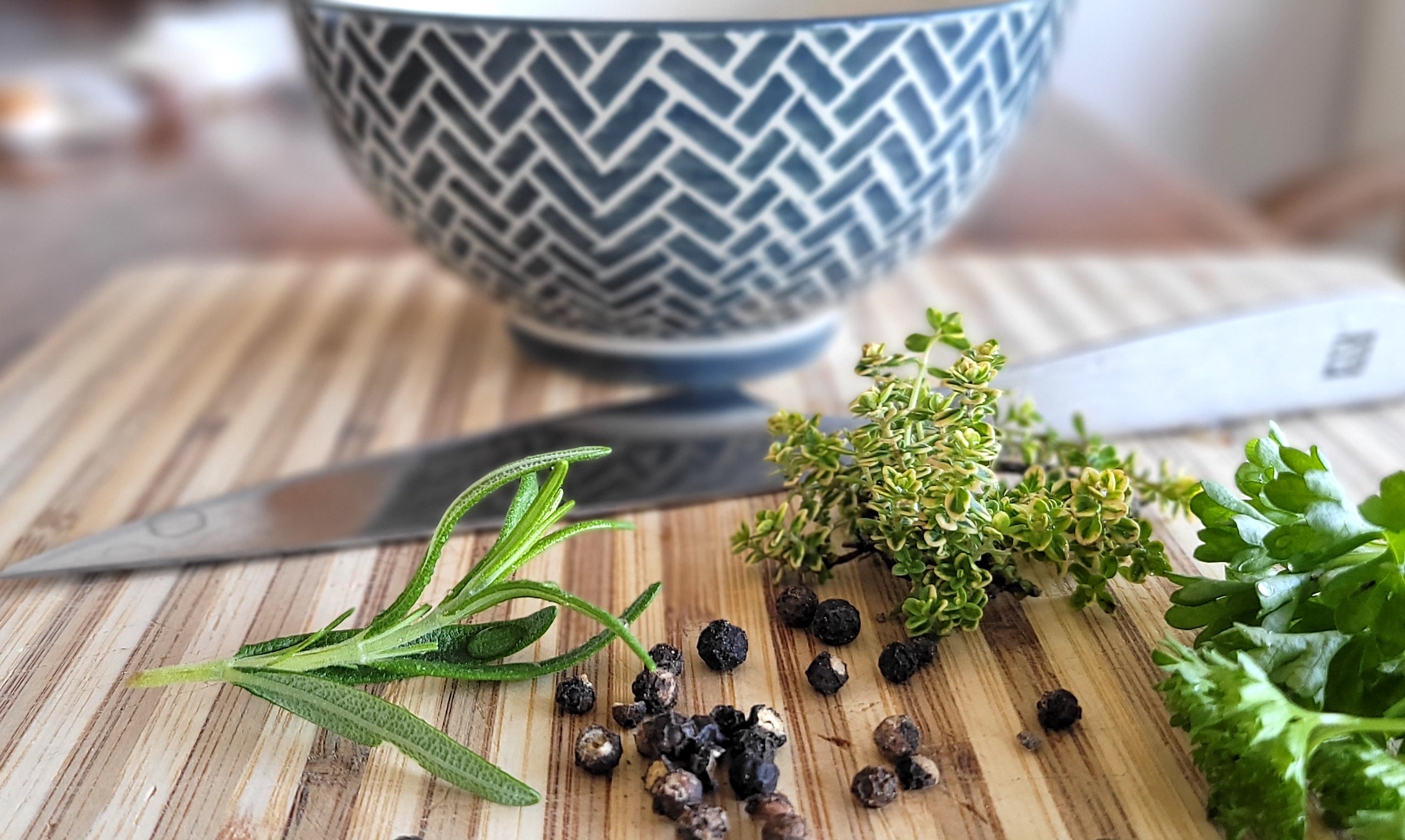 Manche Kräuter verlieren beim Kochen schnell ihr Aroma und kommen deshalb ganz zum Schluss an die Speise, andere entfalten es auch bei Hitze und dürfen länger mitgaren. Als Faustregel gilt: Frische Kräuter mit eher robusten Blättern wie Thymian, Rosmarin oder Lorbeer dürfen länger mitgaren. Zarte Kräuter wie Basilikum, Dill, Schnittlauch, Petersilie, Salbei, Minze oder Zitronenmelisse kommen am besten kurz vor dem Servieren dazu. Das Aroma getrockneter Kräuter ist häufig recht intensiv, weshalb sie zunächst vorsichtig dosiert werden sollten. Wer das Aroma verstärken möchte, kann sie direkt vor dem Gebrauch etwas zerreiben.