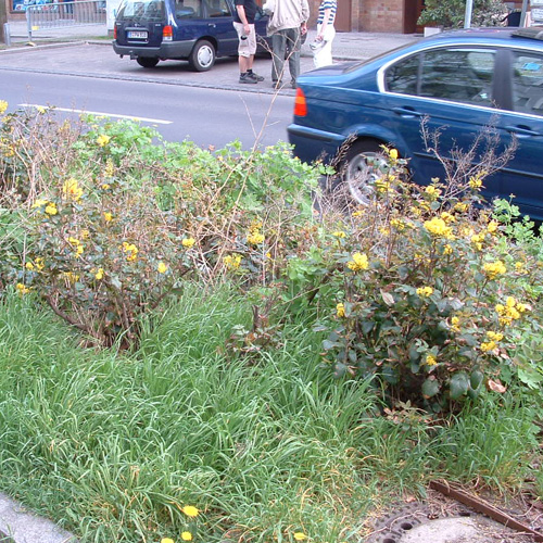 Baumscheiben von Park- und Straßenbäumen, Pflanzstreifen und –rabatten werden von Wildkräutern durch- und überwachsen. Von baumbestandenen Rabatten an Bürgersteigen winden sie sich unter die Pflastersteine, heben sie an und werden zu Stolpersteinen.