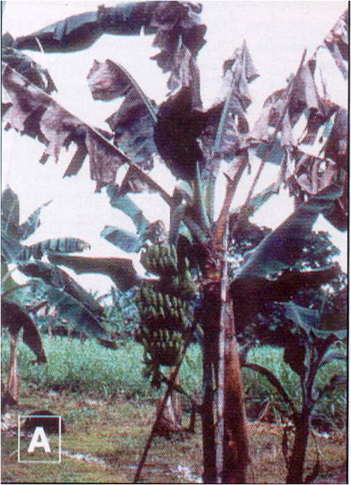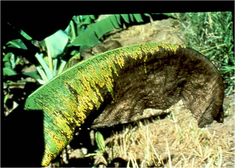 Der Pilz befällt die Blätter der Bananenstaude während sie sich entfalten oder kurz danach. Winzige Flecken sind die ersten Anzeichen, die man bereits zehn bis 15 Tage nach der Infektion erkennt. Wenn der Pilz sich weiter ausbreitet, werden daraus zunächst schmale dunkle Streifen. Dann entstehen die charakteristischen schwarzgestreiften Blätter, die schließlich absterben. Im Extremfall sind alle Blätter zerstört, bevor die Bananen überhaupt reif sind. Dann fällt die ganze Bananenstaude ab. Der Pflanze fehlen erhebliche Blattflächen für die lebensnotwendige Photosynthese. Nicht nur die Staude selbst auch die einzelnen Früchte sind kleiner. Zudem stellt der Pilz einen Giftcocktail her, der offensichtlich einen verfrühten Reifungsprozess der Früchte in Gang setzt. Da zu früh gereifte Früchte nicht verkauft werden können, bedeutet das erhebliche Ausfälle für Vermarktung und insbesondere Export. Der Pilz bedroht also Pflanzenwachstum und Ernteertrag gleichermaßen.