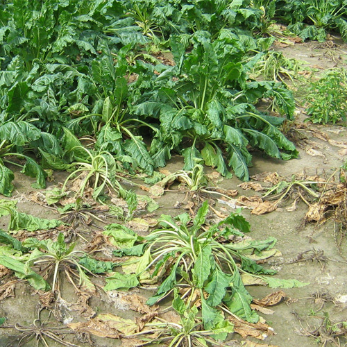 „Bei Zuckerrüben kann Rhizoctonia solani zum Verlust der gesamten Ernte führen“, weiß Heinrichs. Befallene Rüben bilden bereits vor dem Verfaulen Invertzucker anstelle von Saccharose. Das gefährdet die Zuckergewinnung in den Fabriken: „Invertzucker verklebt die Siebe und kristallisiert nicht wie die Saccharose. Deshalb werden Lieferpartien mit faulen Rüben erst gar nicht zur Verarbeitung angenommen“, erklärt der Experte. Für den Landwirt bedeutet das einen erheblichen finanziellen Verlust, denn diese Rüben können allenfalls noch zu Tierfutter verarbeitet werden.