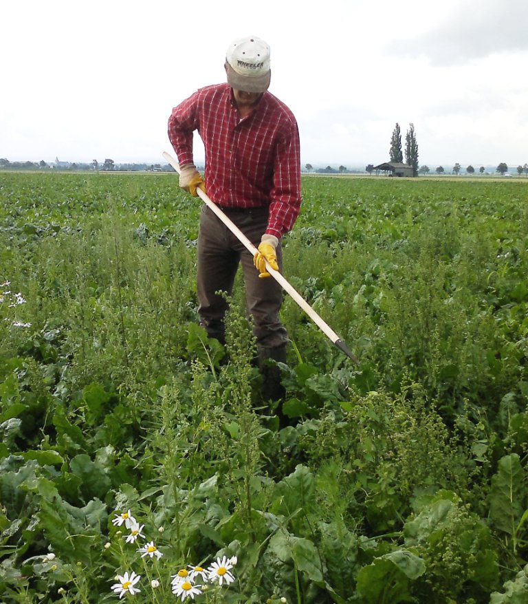Eine Kehrseite hat die Frühjahrswitterung allerdings doch für die Rübenanbauer: Die Unkräuter müssen sie in diesem Jahr verstärkt mit der Hacke in aufwändiger Handarbeit kurz halten. Im Frühjahr konnten die Herbizide ihre Wirkung nur eingeschränkt entfalten. Viele Mittel werden über die Unkrautwurzeln aufgenommen. Das funktioniert aber nur bei ausreichender Feuchtigkeit. Sind die Böden – wie in diesem Frühjahr – zu trocken, gelangen die Mittel nicht zu den Unkrautwurzeln. Die Folge: Ein Teil der Unkräuter ist weitergewachsen. Für eine Herbizidbehandlung sind sie inzwischen zu groß. Die Landwirte tun gut daran, diese Pflanzen von Hand zu beseitigen. Sonst überwuchern sie die Zuckerrüben, konkurrieren dabei mit ihnen um Platz, Licht, Wasser und Nährstoffe, und verursachen dadurch Ertragsverluste. Noch schlimmer ist: Sie hinterlassen ihre Samen. Diese bleiben im Boden über Jahrzehnte keimfähig, behindern den Anbau und schmälern Ertrag und Gewinn.