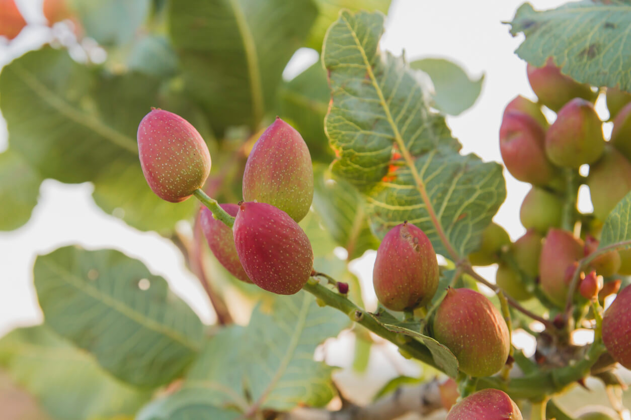 Pistazien wachsen in trockenen, wüstenähnlichen Gebieten und können 200 bis 300 Jahre alt werden. Der Pistazienbaum bringt Blütentrauben mit bis zu 300 einzelnen Blüten hervor, die sich ab Mitte März zeigen. Die Pistazienkerne entwickeln sich im Laufe des Monats Juli. Die Erntemengen schwanken von einem Jahr auf das andere sehr deutlich, da Pistazien in sogenannten „abwechselnd-tragenden“ Zyklen Früchte tragen. So ist der Ernteertrag in einem Jahr hoch und im nächsten Jahr niedrig.