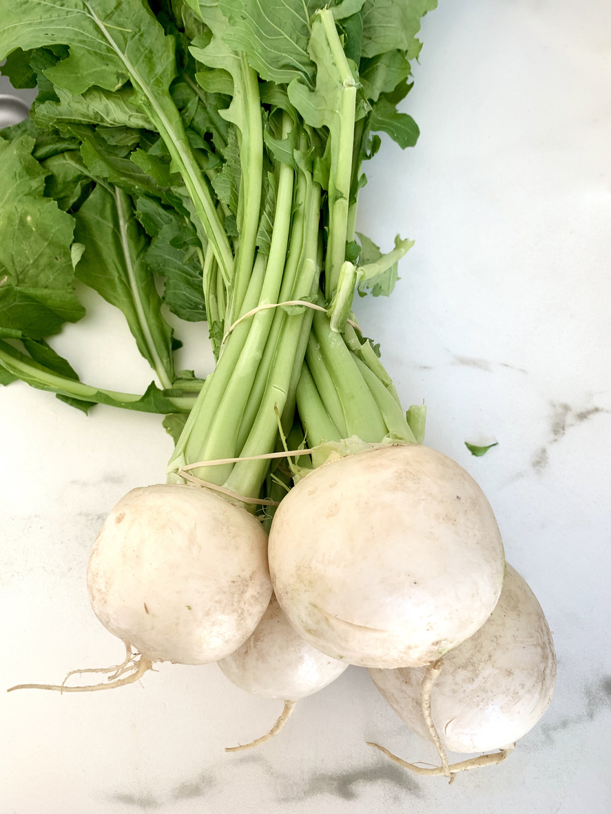 Die Mairübe, in der rosa Form auch Navette genannt, macht ihrem Namen alle Ehre: Sie ist nämlich ein Saisongemüse, das hauptsächlich im Mai/Juni geerntet wird. In früheren Jahrhunderten erfüllte die weiße Rübenwurzelknolle eine ähnliche Funktion wie Kartoffeln als sattmachendes Grundnahrungsmittel. Mairüben stammen ursprünglich aus Indien. Heute sind sie sowohl in tropischen Ländern als auch in Europa weit verbreitet. Nachdem sie lange von unserem Speiseplan verschwunden waren, kommen sie jetzt vermehrt wieder in unsere Küche und auf den Teller. Geschmacklich erinnern sie ein wenig an das Teltower Rübchen, an die Steckrübe oder auch an die Herbstrübe.