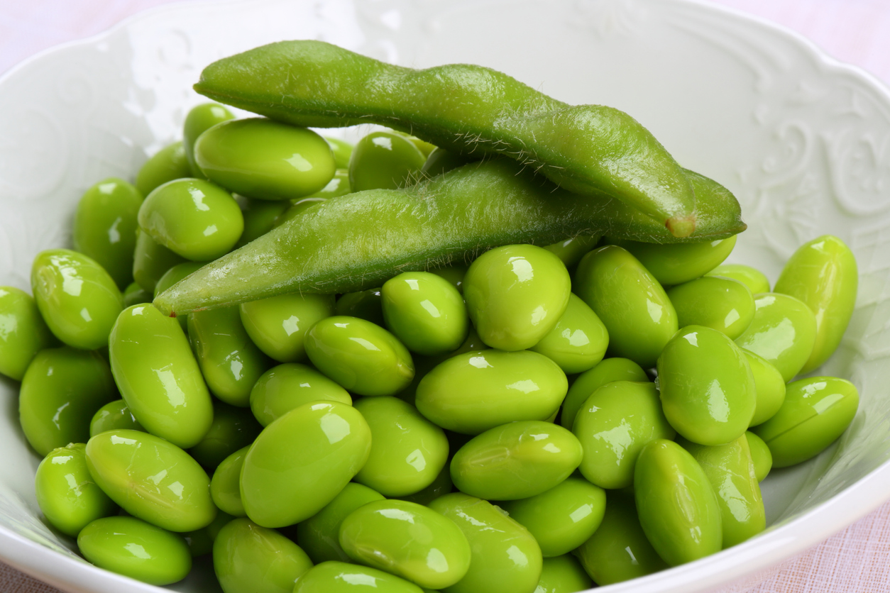 Edamame-Bohnen schmecken leicht nach Erbsen, nussig und süß. Seit Jahrhunderten gehört die eiweißreiche „Bohne am Stiel“ oder „Bohne am Zweig“ in Japan und China in den Speiseplan. Seit einigen Jahren wird sie auch in Zentraleuropa angebaut, wie in Deutschland in der Pfalz. Doch was ist Edamame eigentlich? Edamame sind ganz einfach unreif geerntete, grüne Sojabohnen. Die zubereiteten Schoten werden ebenfalls Edamame genannt. Erhältlich sind sie zum Beispiel in Asia-Märkten, wo sie meist tiefgekühlt angeboten werden.
