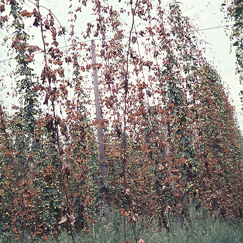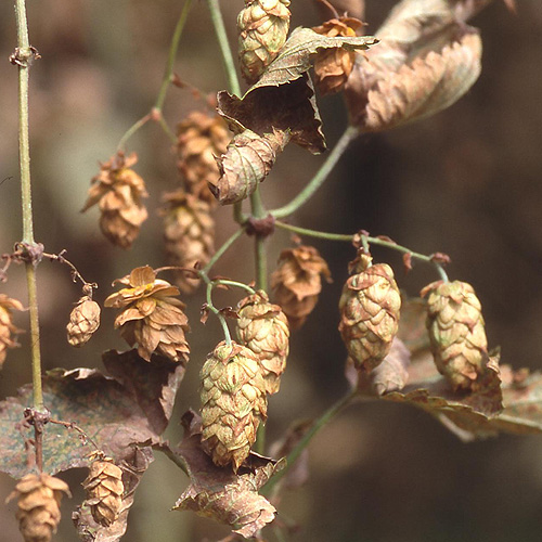 Das Massenwachstum des Hopfens lockt zahlreiche Schädlinge und Krankheiten an. Zum Teil sind sie nicht bekämpfbar, wie etwa die von einem Pilz verursachte Hopfenwelke und verschiedene Viruskrankheiten. Züchter suchen deshalb nach widerstandsfähigen Sorten.