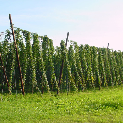 Aus jedem Wurzelstock sprießen ab April 40 bis 60 Triebe. Gebraucht werden jedoch nur vier bis sechs. An Aufleitdrähten befestigt wachsen diese im Extremfall bis zu 35 Zentimeter am Tag. Dabei verbrauchen die Pflanzen eine große Menge Nährstoffe, die durch Düngung wieder zugeführt werden müssen. Die Dolden oder Zapfen des Hopfens von den bis zu sieben Meter langen Reben zu pflücken, war früher Handarbeit. Heute erledigen das Hopfenpflückmaschinen. Anschließend werden die Zapfen in großen Hopfendarren getrocknet.