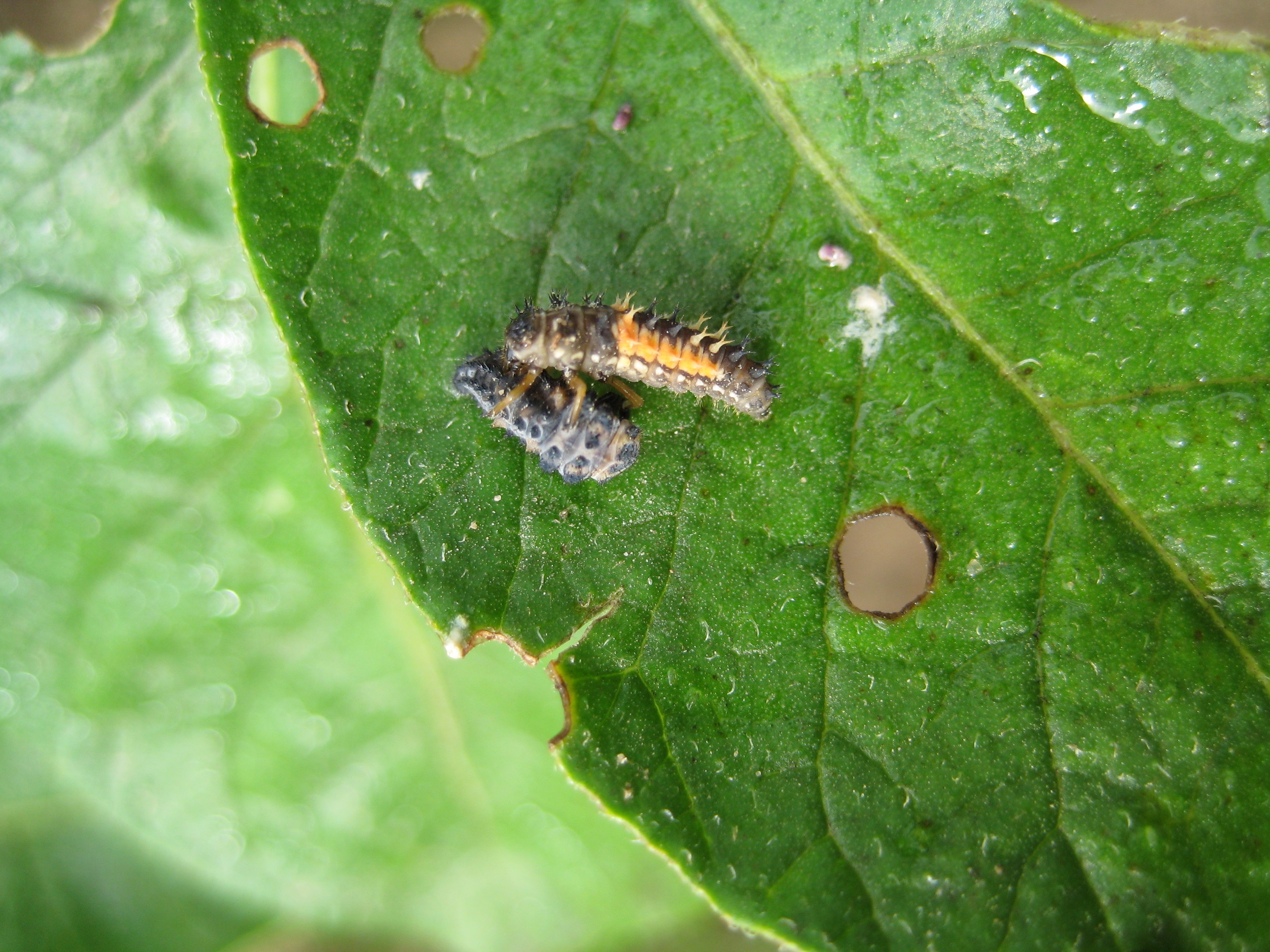 Der Asiatische Marienkäfer wurde vor etwa 30 Jahren in Europa eingeführt, um die biologische Bekämpfung von Läusen schlagkräftiger zu machen. Aber er vermehrte sich unkontrolliert bis hin zu regelrechten Plagen. Mittlerweile beschränken er und seine Larven sich längst nicht mehr auf die ursprünglich zugedachte Aufgabe und machen mangels anderer Beute selbst vor den Larven ihres einheimischen „Bruders“ nicht Halt. Sogar an Äpfeln, Trauben und Pfirsichen findet der Neuankömmling Geschmack.