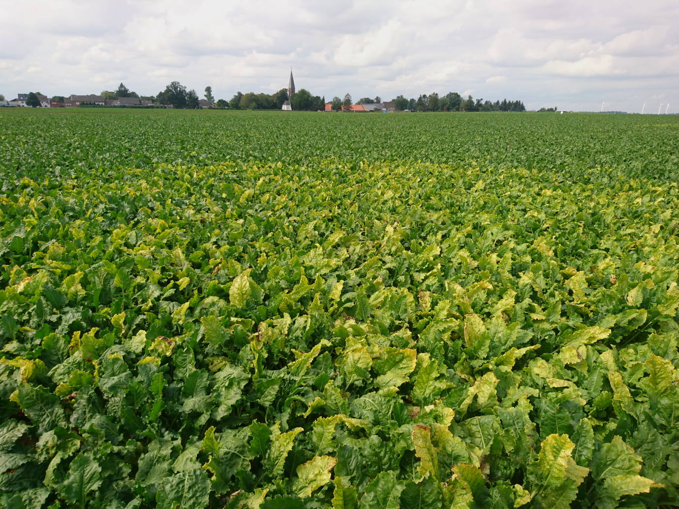 Mit zerbröselnden gelben statt frischen grünen Blättern boten viele Zuckerrübenäcker in den beiden letzten Sommern einen traurigen Anblick. Die Pflanzen waren von der Virösen Rübenvergilbung befallen. Dabei setzt die Vergilbung an mittleren und älteren Blättern von der Spitze her an und breitet sich schnell über das ganze Blatt aus. Die Blattadern blieben zum Teil noch grün. Zunächst werden Nester mit einigen wenigen befallenen Pflanzen sichtbar. Im Verlauf der Sommer 2019 und 2020 dehnten sich die kranken Zuckerrüben zum Teil flächendeckend über ganze Felder aus.