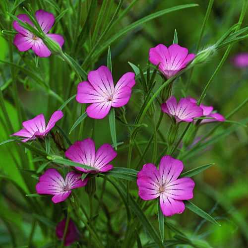 Die Kornrade (Agrostemma githago) begleitete früher als Unkraut das Sommer- und Wintergetreide. Gerieten ihre Samen ins Getreide, waren Vergiftungen die Folge. Seit es möglich ist, das Saatgut besser zu reinigen, ist sie von den Äckern verschwunden. Außerhalb dieses Biotops konnte sie sich nicht halten. Mit neuen Sorten wie zum Beispiel ’Asko’ hat sie nun eine neue Chance als Gründüngungspflanze erhalten. 2003 war die heute eher seltene Pflanze Blume des Jahres. Alle ihre Teile sind sehr stark giftig und lösen Krämpfe und Schleimhautreizungen bis hin zur Atemlähmung aus.
