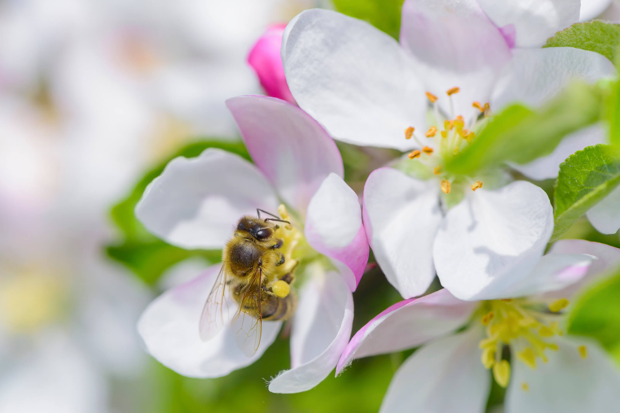 Sehr gute Pollen- und Nektarlieferanten für Honigbienen sind die Blüten von Obstgehölzen: Nach Kirsche und Pflaume blühen Birne, Apfel und Quitte. Aber auch Stauden, wie zum Beispiel Winterlinge, Astern, Ballon- und Glockenblumen, Katzenminze oder Margeriten, sind gute Futterquellen für Insekten und eignen sich sowohl für den Garten als auch für die Bepflanzung des Balkons. Kräuter wie Borretsch, Koriander oder Zitronenmelisse bringen Geschmack an unser Essen und liefern gleichzeitig Nahrung für Bienen.