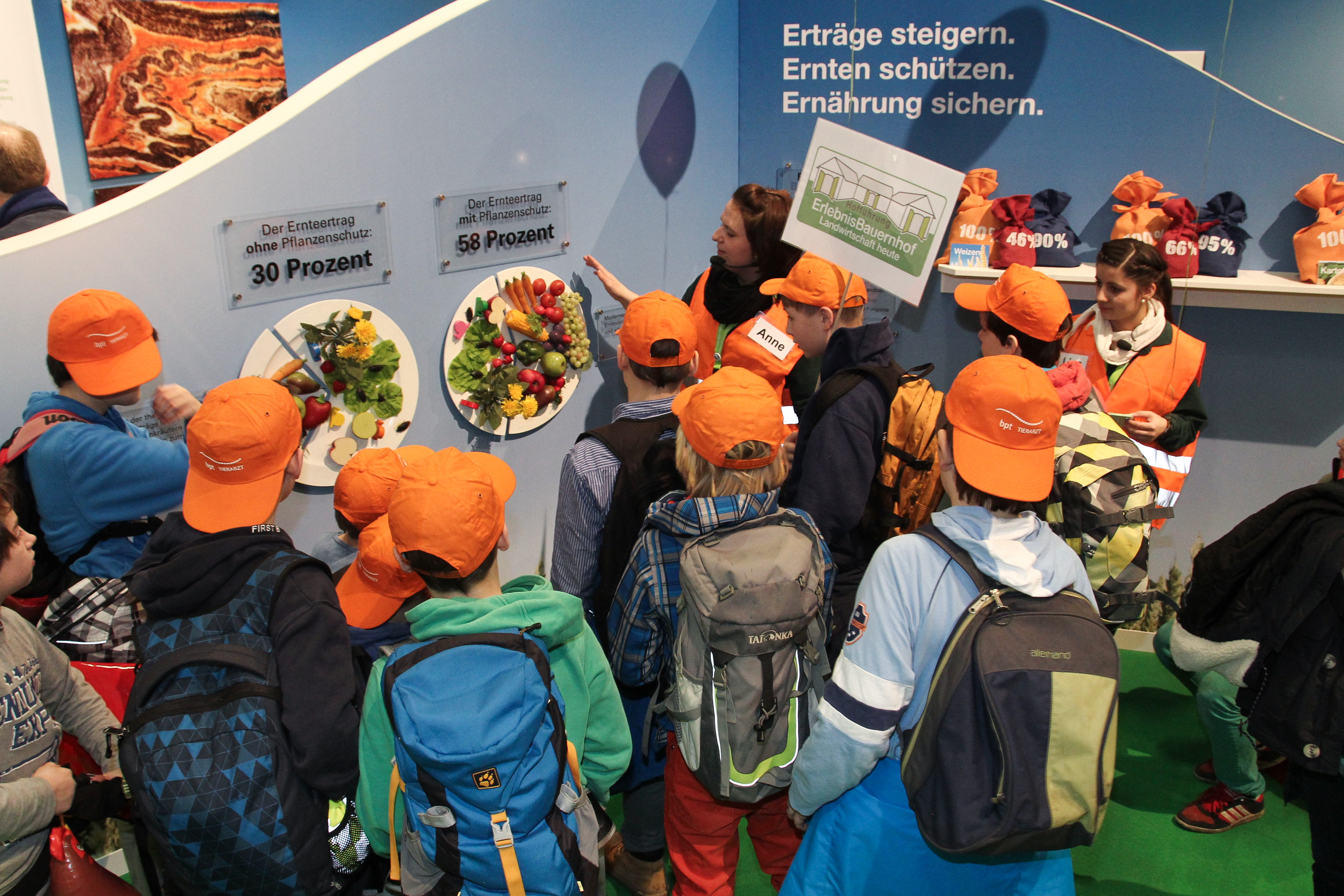 Sympathische und kompetente Begleitung erfuhren nicht nur Schulklassen, die den Treffpunkt Pflanzenschutz & Pflanzenernährung besuchten. Interessierte Verbraucher, Fachbesucher und Politiker wurden über den Stand geführt und ihnen die Exponate erläutert. In vielen Gesprächen zeigte sich das Interesse am Dialog zu den Themen des Auftritts.