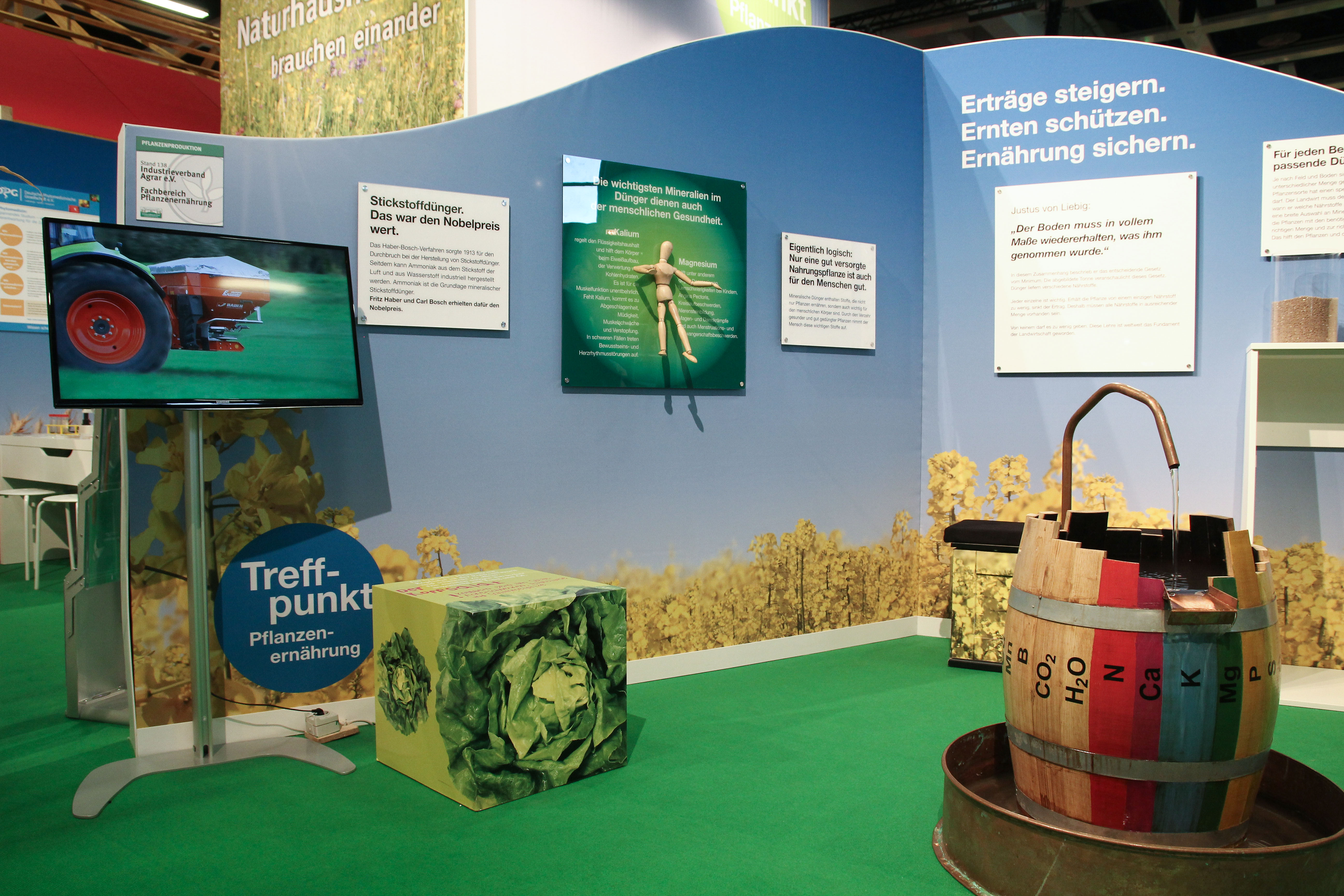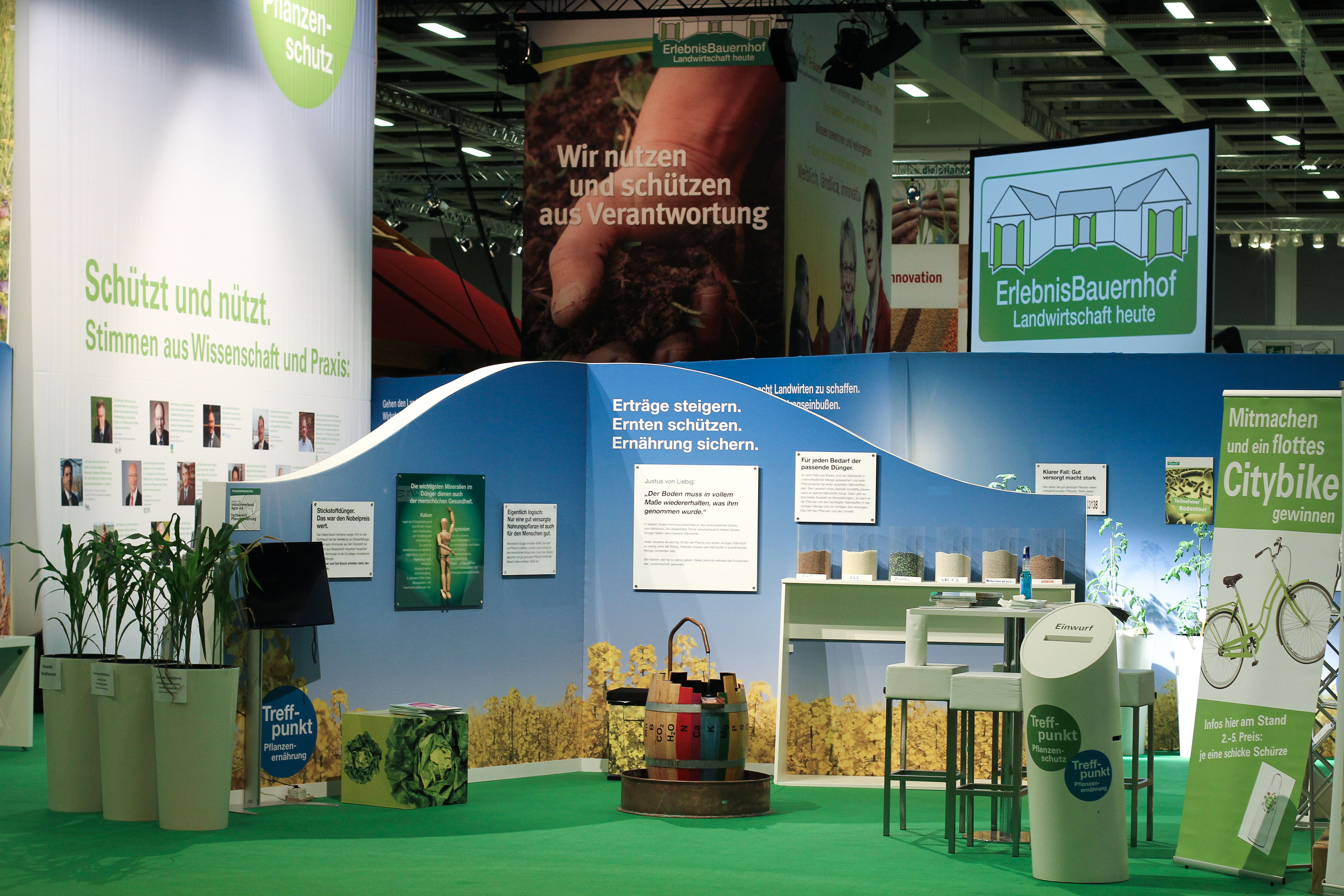 Gemeinsam mit Partnern aus Wissenschaft, Behörden, Beratung, Verbänden, Industrie und Praxis lud der Industrieverband Agrar e. V. (IVA) auch in diesem Jahr wieder zum Dialog. Am "Treffpunkt Pflanzenschutz und Pflanzenernährung" im ErlebnisBauernhof in Halle 3.2 stellten sich Experten kritischen Fragen zur Agrarchemie und dem Austausch mit den Messebesuchern zu den Themen Landwirtschaft, Ernährung, Umwelt- und Klimaschutz sowie den Nutzen von modernem Pflanzenschutz und Mineraldüngung.