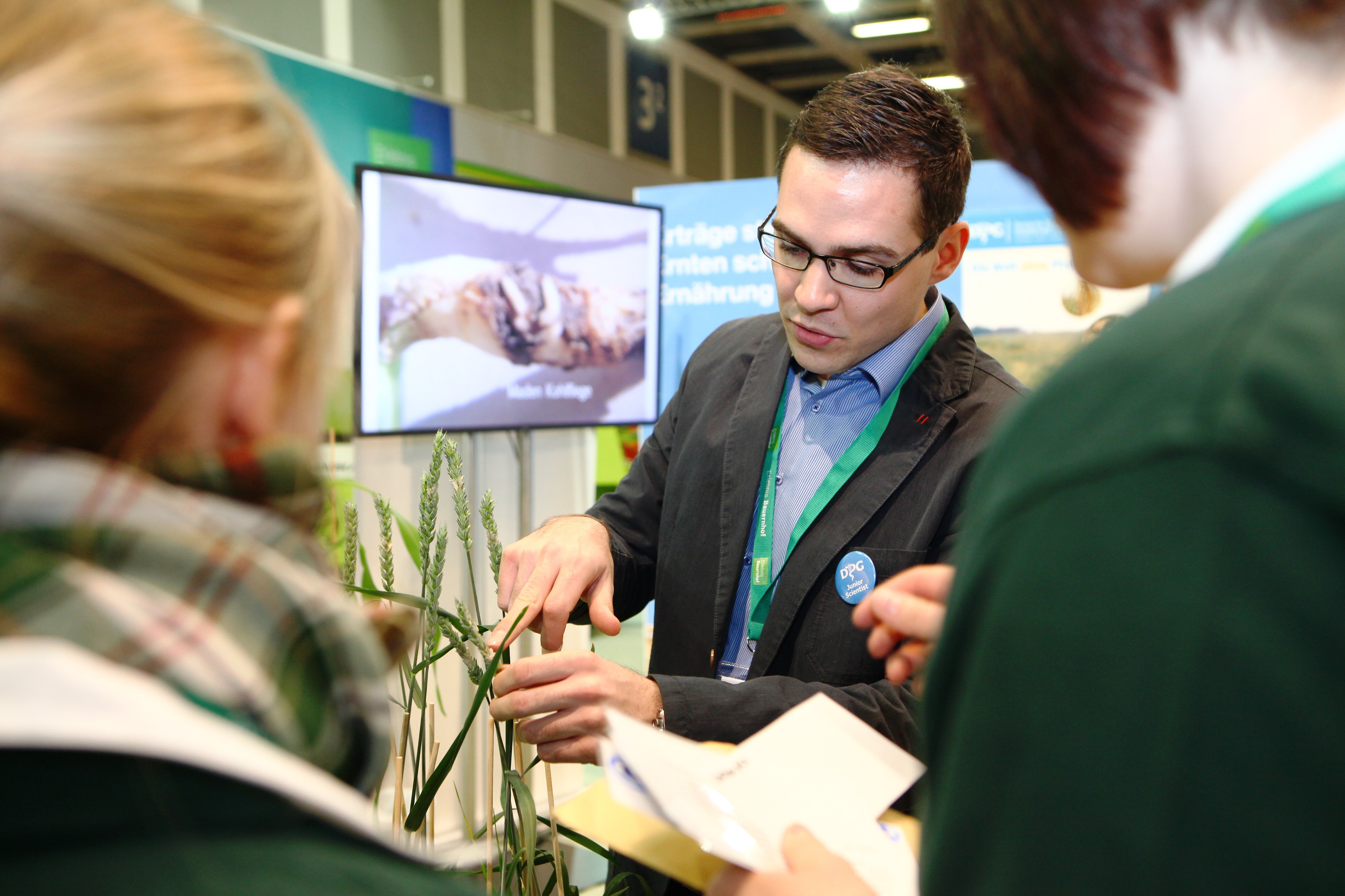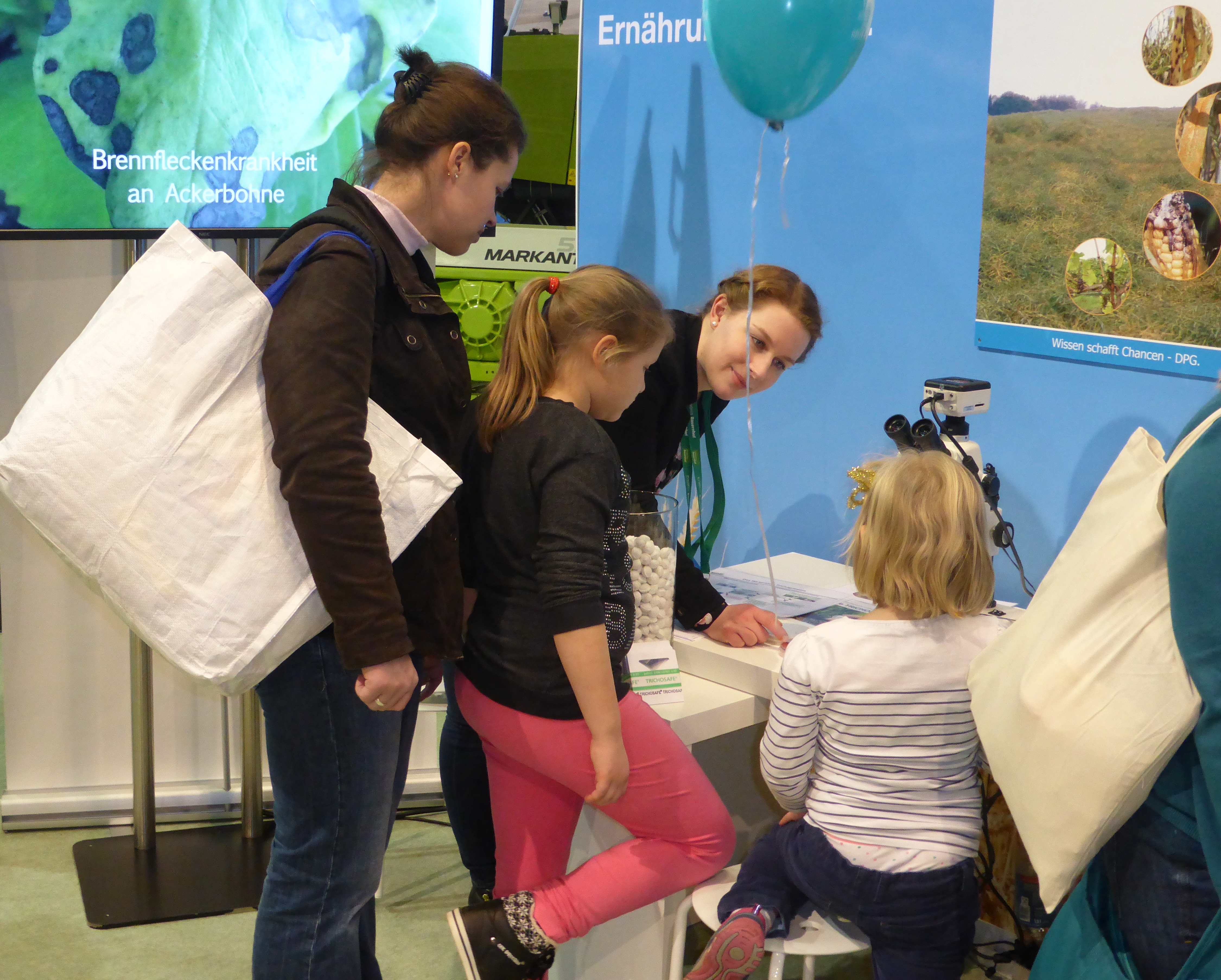 Partner des Treffpunkts 2016 waren wieder die Junioren der Deutschen Phytomedizinischen Gesellschaft (DPG). Die Nachwuchswissenschaftler gaben einen Einblick in die Arbeit als „Pflanzendoktoren“. Sie erklärten, wie Schädlinge und Pilze unseren Nutzpflanzen zusetzen und welche Medizin der Pflanzenschutz in diesen Fällen bereithält. Ein Publikumsmagnet war der Schreibtisch der DPG-Junioren, an dem man durch ein Stereomikroskop Schädlinge wie Speisebohnenkäfer in 40-facher Vergrößerung bei ihrer verheerenden Arbeit beobachten konnte.