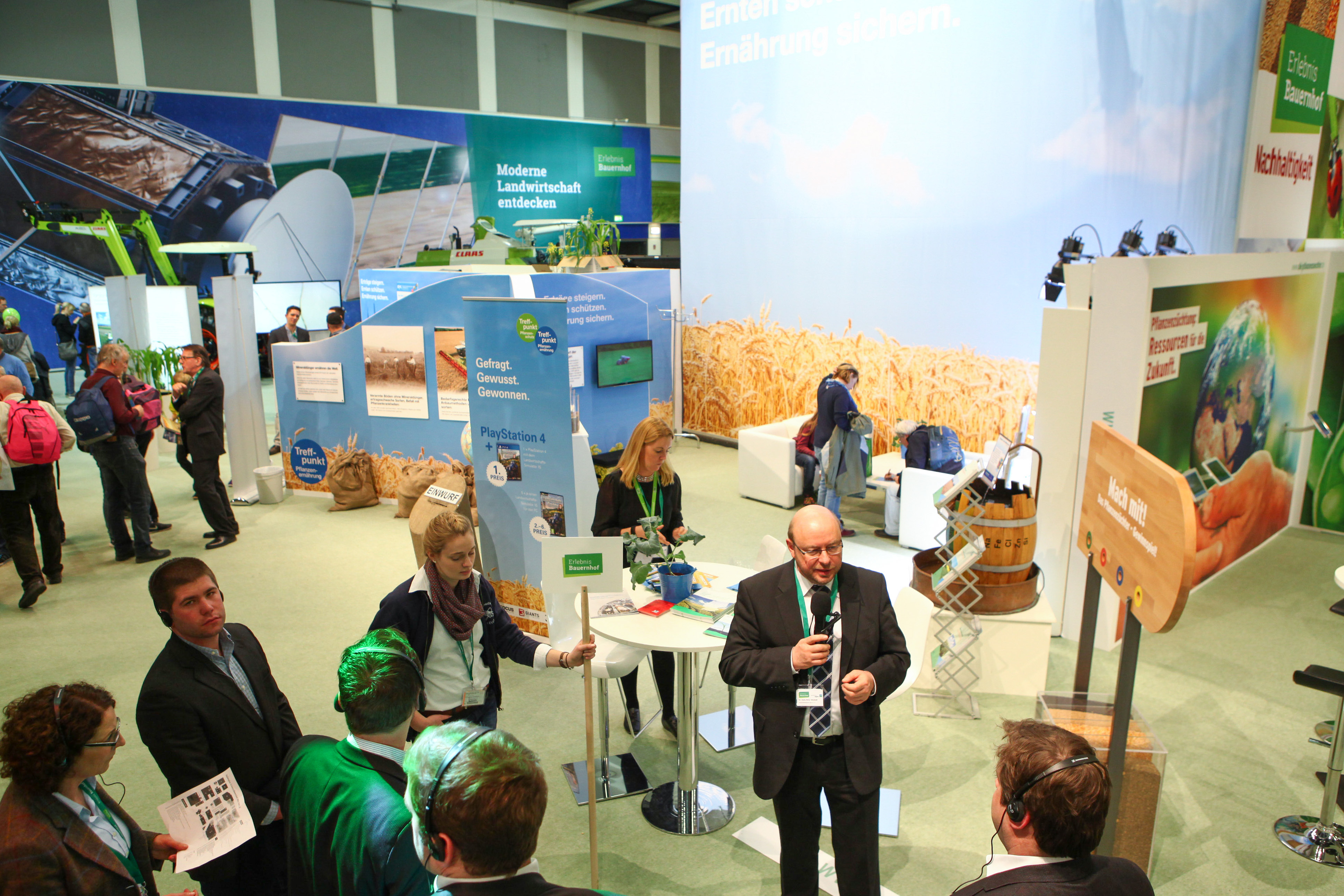 Der Industrieverband Agrar e. V. (IVA) lud wieder zum Dialog auf die Messe. Am „Treffpunkt Pflanzenschutz und Pflanzenernährung“ im ErlebnisBauernhof in Halle 3.2 stellten sich Experten Fragen zur Agrarchemie und dem Austausch mit den Messebesuchern zu Themen wie Rückständen von Pflanzenschutzmitteln in Lebensmitteln, Nutzen von Pflanzenschutz und Mineraldüngung oder dem Einfluss moderner Landwirtschaft auf die Artenvielfalt.
