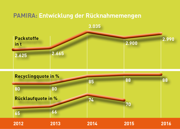 „Der Industrieverband Agrar e. V. (IVA) begrüßt die heutige Verabschiedung des Gesetzes zur Fortentwicklung der haushaltnahen Getrennterfassung von wertstoffhaltigen Abfällen, mit dem ein neues Verpackungsgesetz geschaffen wird. Das Verpackungsgesetz sichert Herstellergetragenen Rücknahmesystemen, die sich seit Jahren im Markt bewährt haben, ihren Fortbestand. Dazu gehört auch das vom IVA initiierte Rücknahme- und Entsorgungssystem PAMIRA für restentleerte Pflanzenschutzmittel- und Flüssigdünger-Verpackungen, das 1996 bundesweit eingeführt wurde.“PAMIRA hat 2016 insgesamt 2987 Tonnen Verpackungen angenommen und umweltverträglich verwertet - das zweitbeste Ergebnis in der 20-jährigen Geschichte des Systems. Regelmäßig erreicht PAMIRA eine Rücklaufquote um 70 Prozent - und das ohne eine gesetzliche Rückgabeverpflichtung.