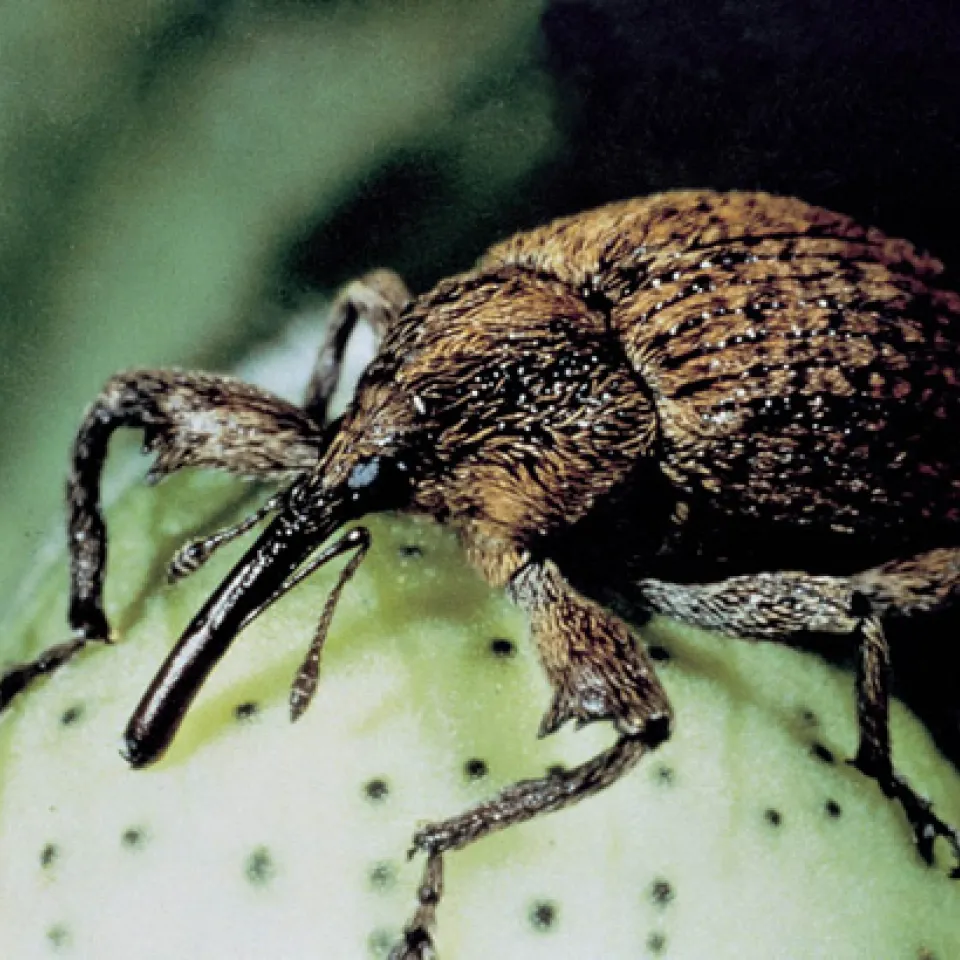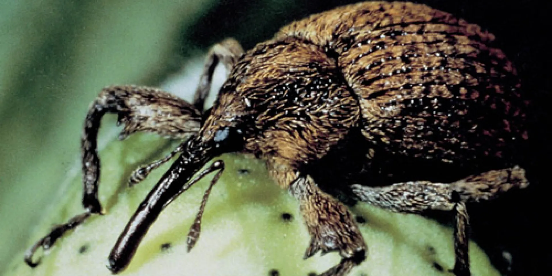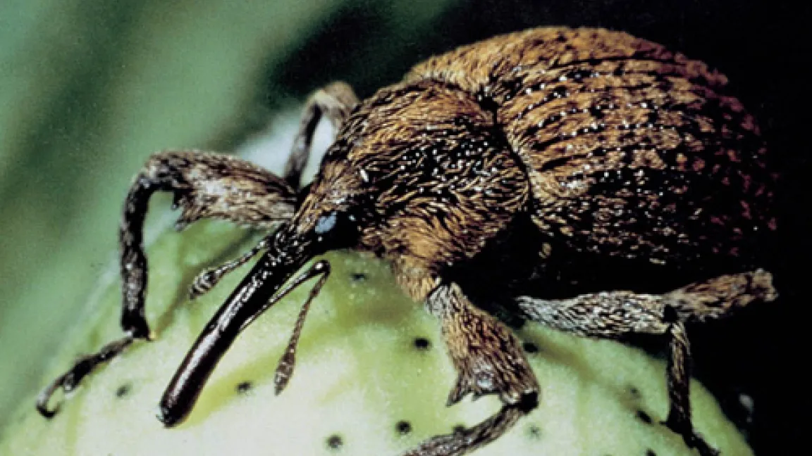 Der Baumwollkapselkäfer (Anthonomus grandis) ist nur etwa acht Millimeter lang, einschließlich seines Rüssels, der die halbe Körperlänge ausmacht. Die Käferweibchen beißen Löcher in die Blütenknospen und Samenkapseln der Baumwollpflanze und legen dort ihre Eier ab. Später fressen die Larven Knospen und Kapseln leer. Die Samen und mit ihnen die langen weißen Samenhaare, die schon seit Jahrtausenden für Textilien genutzt werden, gehen verloren.