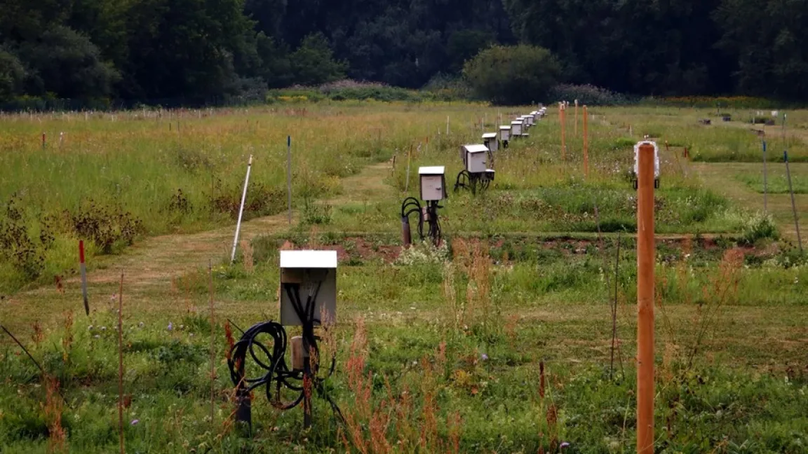 Huang und ihr Team haben deshalb für ihre Studie Ergebnisse ausgewertet, die von 2004 bis 2021 im groß angelegten Grasland-Biodiversitätsexperiment – dem Jena Experiment – gesammelt wurden. Das Versuchsgelände umfasste 80 Parzellen mit einer unterschiedlichen Pflanzenvielfalt von einer bis zu 60 Arten. Außerdem lieferten vier Parzellen mit unbedecktem Boden und zwei Parzellen mit unkontrolliertem Bewuchs wichtige Bezugspunkte. Die Bodentemperatur wurde automatisch in 5 und 15 Zentimetern Tiefe minütlich über einen Zeitraum von 18 Jahren aufgezeichnet – was eine erhebliche Klimavariabilität abdeckt.