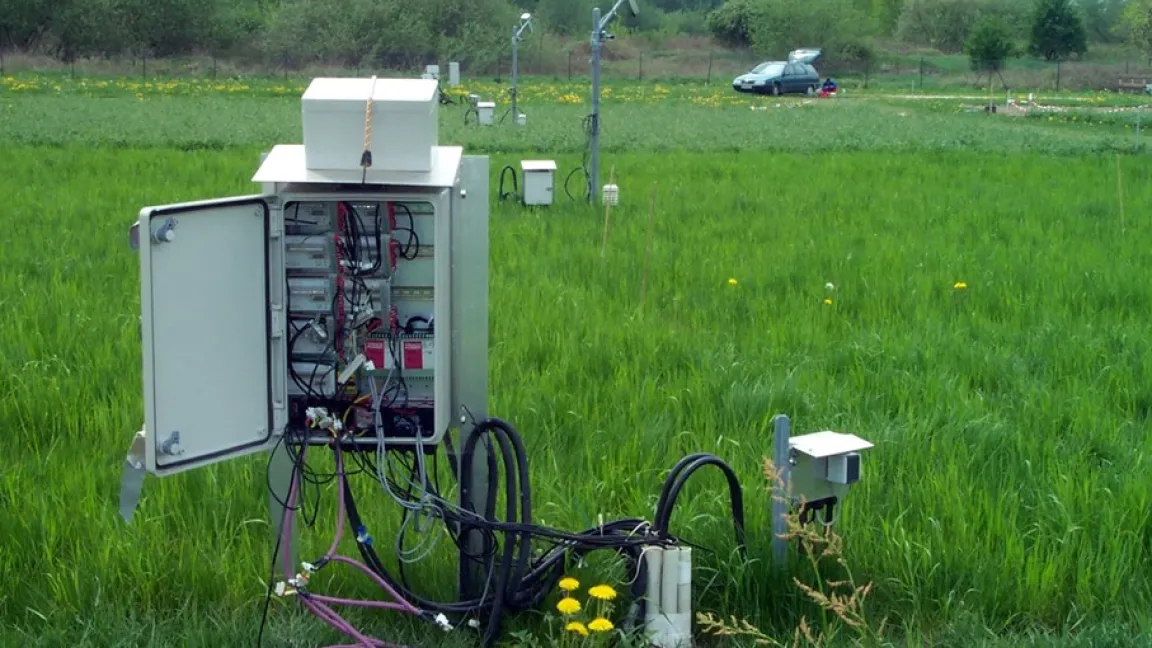 Bodentemperaturmesssystem (Controller Area Network Busmodulsystem) am Versuchsstandort Jena. Foto: Karl Kübler / Max-Planck-Institut für Biogeochemie Jena