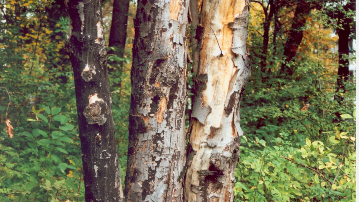 Die Rußrindenkrankkeit beim Ahorn wird durch den Pilz Cryptostroma corticale verursacht. Der Pilz profitiert von höheren Temperaturen. Er trat erstmals 2005 in Deutschland auf. „Zuvor kannten wir die Rußrindenkrankheit aus Großbritannien, Frankreich oder Nordamerika“, sagt der Experte vom JKI. Ihren Namen verdankt die Krankheit dem vom Pilz gebildeten Sporenlager – einem schwarzen, großflächigen und russartigen Belag. Dieser ist selbst für den Menschen nicht ungefährlich, denn eingeatmete Sporen können die Lungenbläschen schädigen. Dies sei bei Waldarbeitern in Nordamerika beobachtet worden, bestätigt Wulf. Bäume, die durch Wassermangel und Hitze geschwächt sind, bieten dem Pilz ideale Bedingungen. Hier kann er sich in Ruhe und unbemerkt ausbreiten. Bis die Schädigung erkennbar wird, kann es laut Wulf mehrere Jahre dauern.