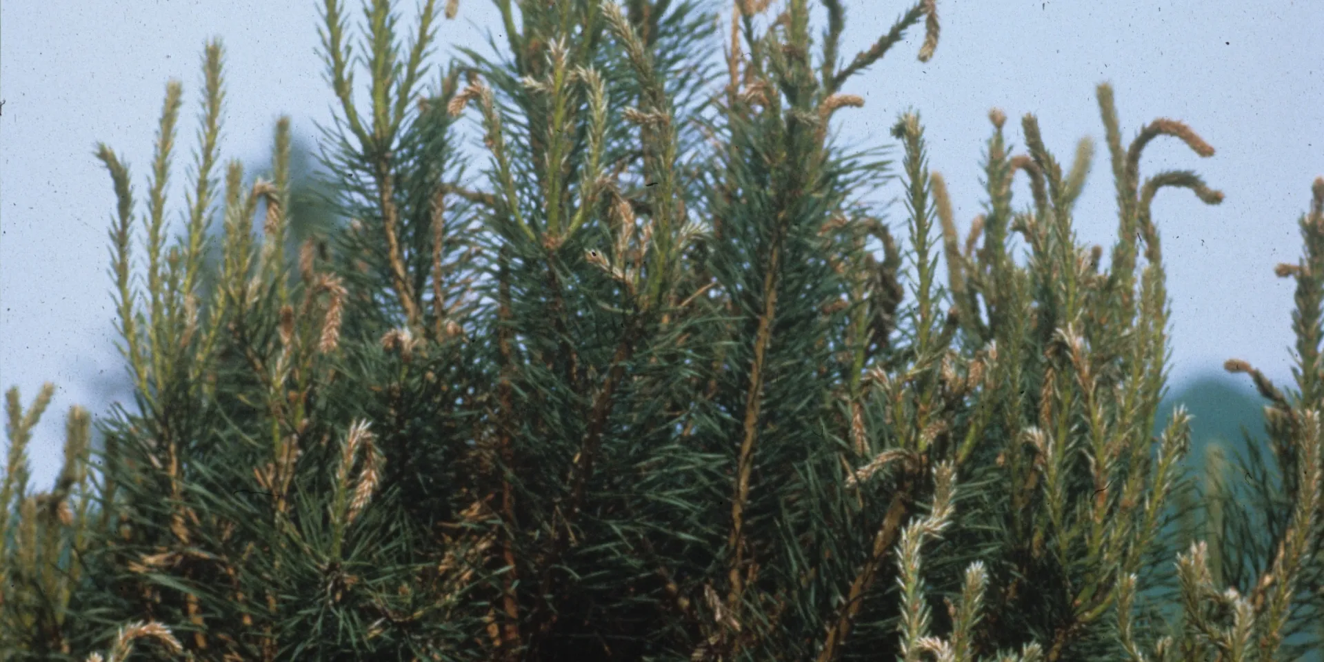 „Solche Pathogene an Nadelgehölzen bekommen plötzlich eine größere Bedeutung. Wir kannten sie bisher eher aus dem mediterranen Raum, südlich der Alpen. Bei uns trat das Diplodia-Triebsterben nur in bescheidenem Umfang auf. Dass es so massiv wird, haben wir nicht erwartet“, berichtet Wulf. Das Triebsterben wird von dem Wärme liebenden Pilz Sphaeropsis sapinea verursacht. Dieser schädigt vor allem die jungen, im Wachstum befindlichen Lang- und Kurztriebe an zwei- oder dreinadeligen Kiefern. Sie verfärben sich braun und sterben ab. Gleichzeitig können Kronenteile und im Extremfall sogar ganze Bäume zu Grunde gehen. Im abgestorbenen Rindengewebe entwickeln sich schwarze, rundliche Pilzfruchtkörper von etwa einem Millimeter Größe. Im Stammholz ruft der Pilz durch die Besiedlung mit dem dunklen Pilzmyzel die so genannte Holzbläue hervor.