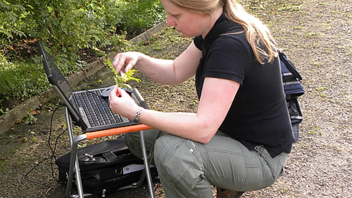 Der Genbank geht es allerdings nicht allein darum, die Sorten im Anbau zu erhalten, sondern vielmehr, sie exakt zu erfassen. Bis ins kleinste Detail werden ihre Merkmale beschrieben, dokumentiert und in einer Datenbank gespeichert. Duft, Blütenfarbe, Knospenform oder Form und Farbe der Frucht, alles wird notiert. Besonders bei den Wildrosen sind oft Einzelmerkmale, wie die Formen der Stacheln oder die Bedrüsung von Blättern oder Früchten für eine korrekte Bestimmung und Unterscheidung ausschlaggebend. Genau das muss aus einer Datenbank hervorgehen. „Eine Datenbank befindet sich immer in der Entwicklung. Sie wird ständig den aktuellen Anforderungen angepasst“, erläutert Schulz. Seit dem vergangenen Jahr etwa steht ein System zur mobilen Erfassung zur Verfügung. Das erleichtert Schulz die Arbeit, denn sie kann die Daten nun direkt im Feld in den Computer eingeben.