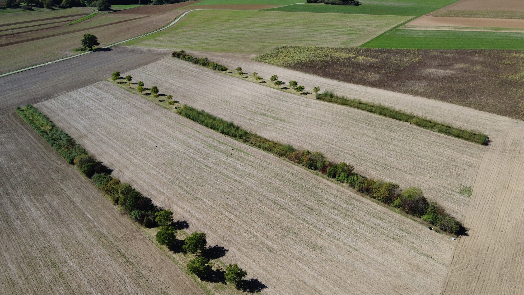 Besonders bemerkenswert: Die Baumreihen stabilisieren die Erträge selbst bei Trockenheit – unabhängig vom Gehölztyp. Auf der windzugewandten Seite zeigte sich zwar ein Rückgang der Erträge bei Wassermangel, doch in der Nähe der Baumreihen und auf der windabgewandten Seite blieben die Erträge stabil. Denn die Gehölzreihen fungieren wie natürliche Schutzschilde. Sie schaffen ein mikroklimatisches Gefälle, das auf der windabgewandten Seite die Verdunstung reduziert, die Bodenfeuchtigkeit erhält und die Lufttemperaturen senkt. Dadurch verringert sich die Transpiration der Pflanzen – ein wesentlicher Vorteil an heißen Sommertagen.