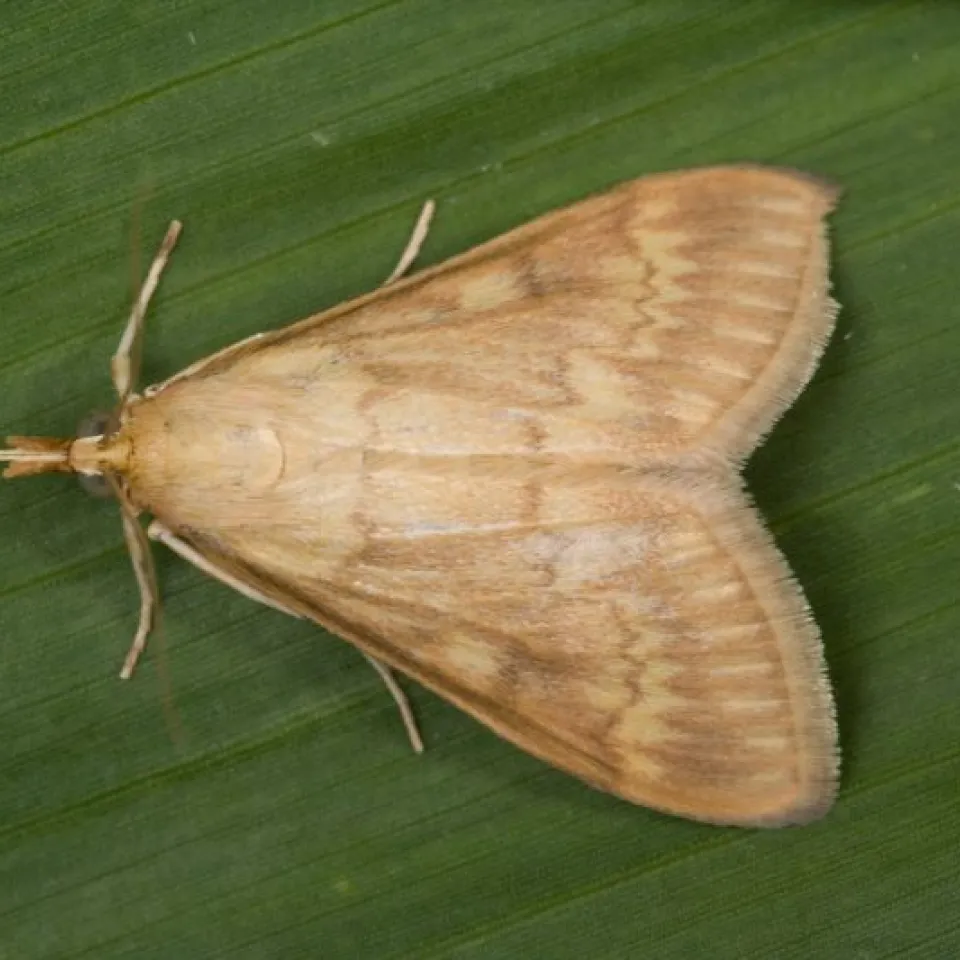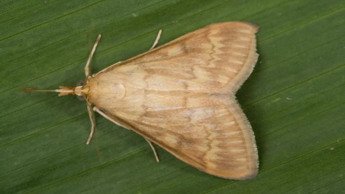 Der Falter des Maiszünslers. Die Larven verursachen die Schäden an der Maispflanze. Foto: Bayer CropScience