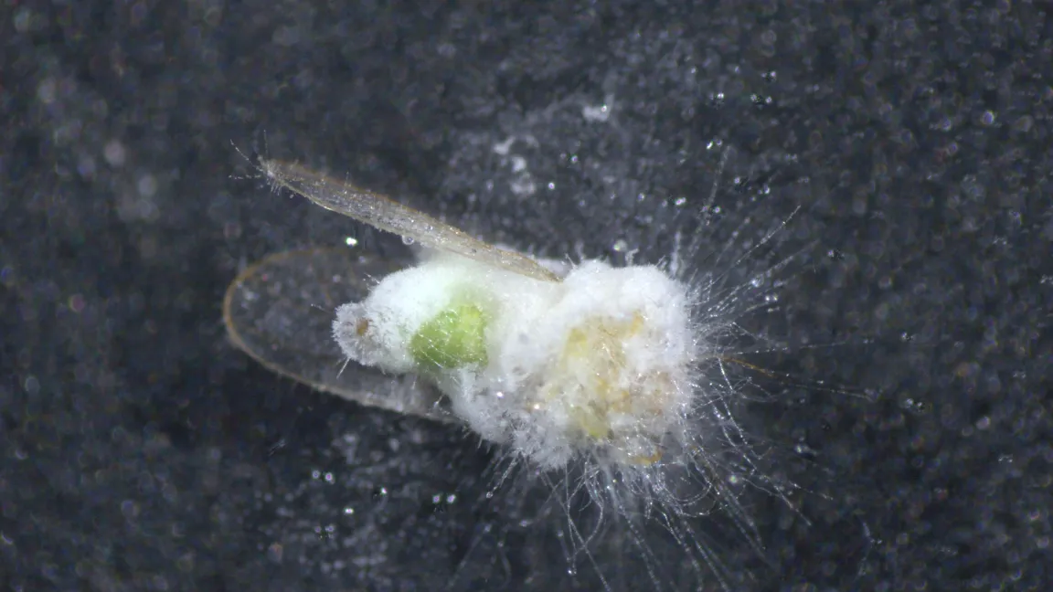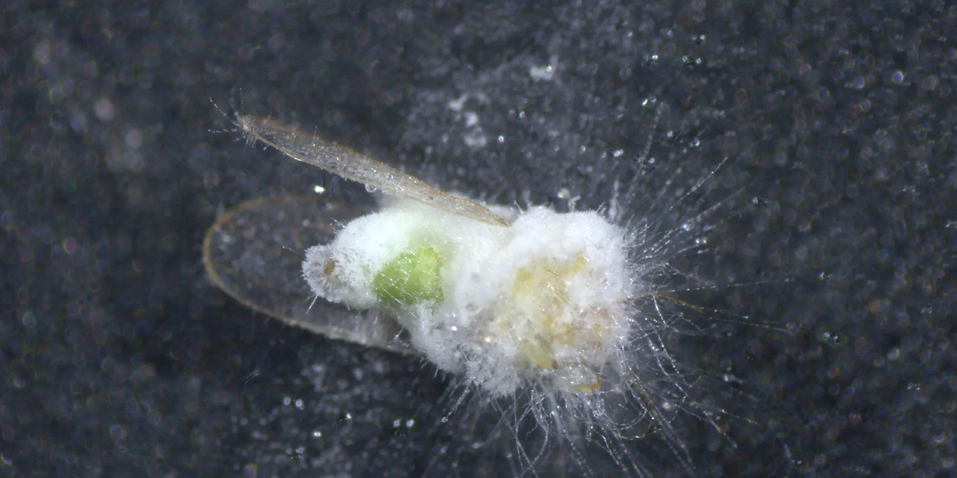 Ein neuer Verbündeter im Kampf gegen blattsaugende Insekten auf Obstbäumen: der Pilz Pandora cacopsyllae. Foto: J. Gross/JKI