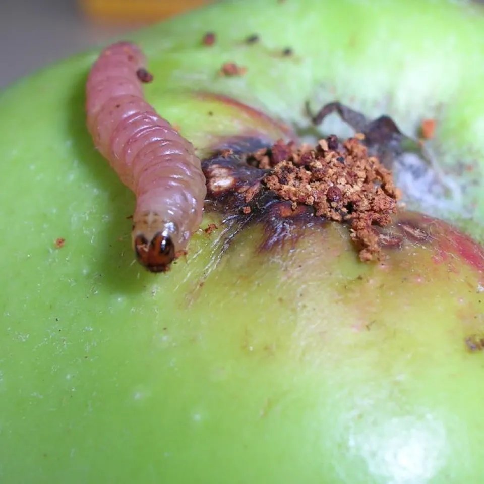Apfelwickler-Larven im Apfel unerwünscht