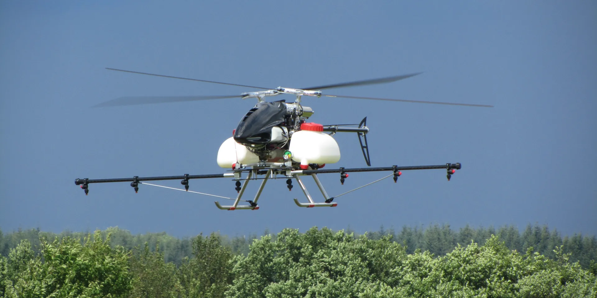 Zunächst müssen dreidimensionale Karten erstellt und die Flugbahnen festgelegt werden. Dann ist der Kleinhubschrauber in der Lage, auch Stellen anzufliegen, die bisher nicht erreichbar waren, etwa an Felsvorsprüngen oder in Mulden. Insgesamt reicht der Spritzmittel-Tank für etwa einen halben Hektar Fläche.