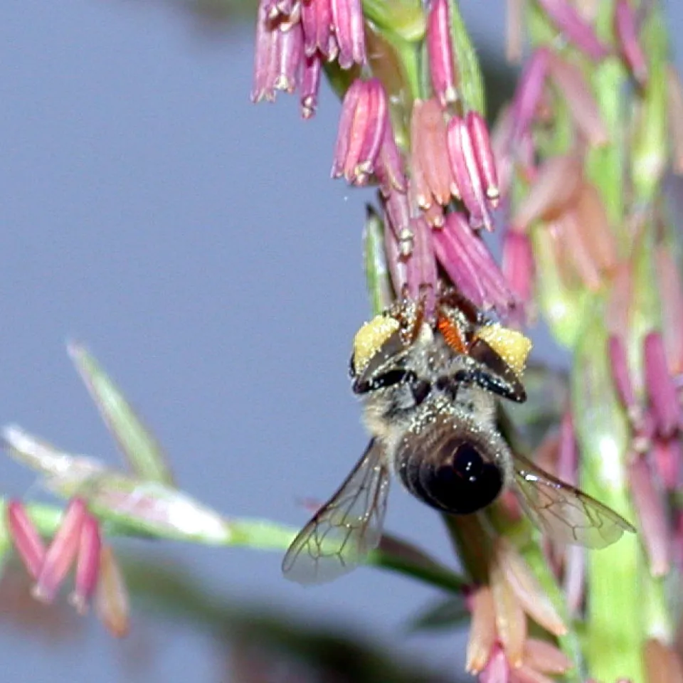 Honigbiene sammelt Maispollen. Foto: Stephan Härtel / Bioscherheit.de