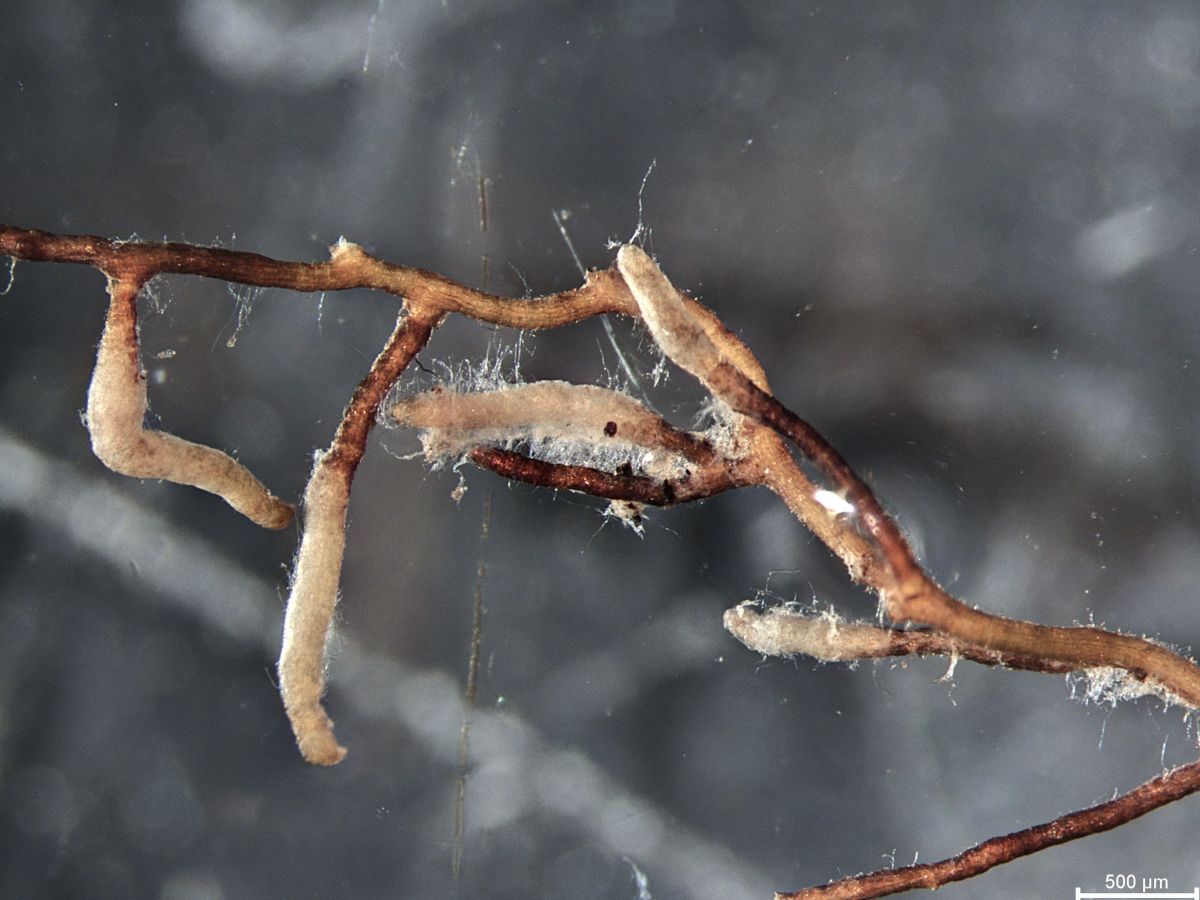 Doch von Anfang an: Symbiose bedeutet Zusammenarbeit zu beider Nutzen, also in dem Fall den Austausch von Wasser und Nährstoffen. Der Pilz hilft der Pflanze, Wasser und Nährstoffe, insbesondere Phosphat, aus dem Boden effizienter aufzunehmen, während die Pflanze den Pilz mit Zucker und anderen organischen Stoffen aus der Photosynthese versorgt. Als Ektomykorrhiza bezeichnet man eine Symbiose zwischen bodenbürtigen Pilzen und den Wurzeln von Bäumen, insbesondere Eichen, Buchen, Kiefern und Fichten. Dabei stoßen die Pilzfäden zwar zwischen die Zellen der Wurzelrinde vor, dringen aber nicht in die Pflanzenzellen direkt ein, wie bei einer Endomykorrhiza.