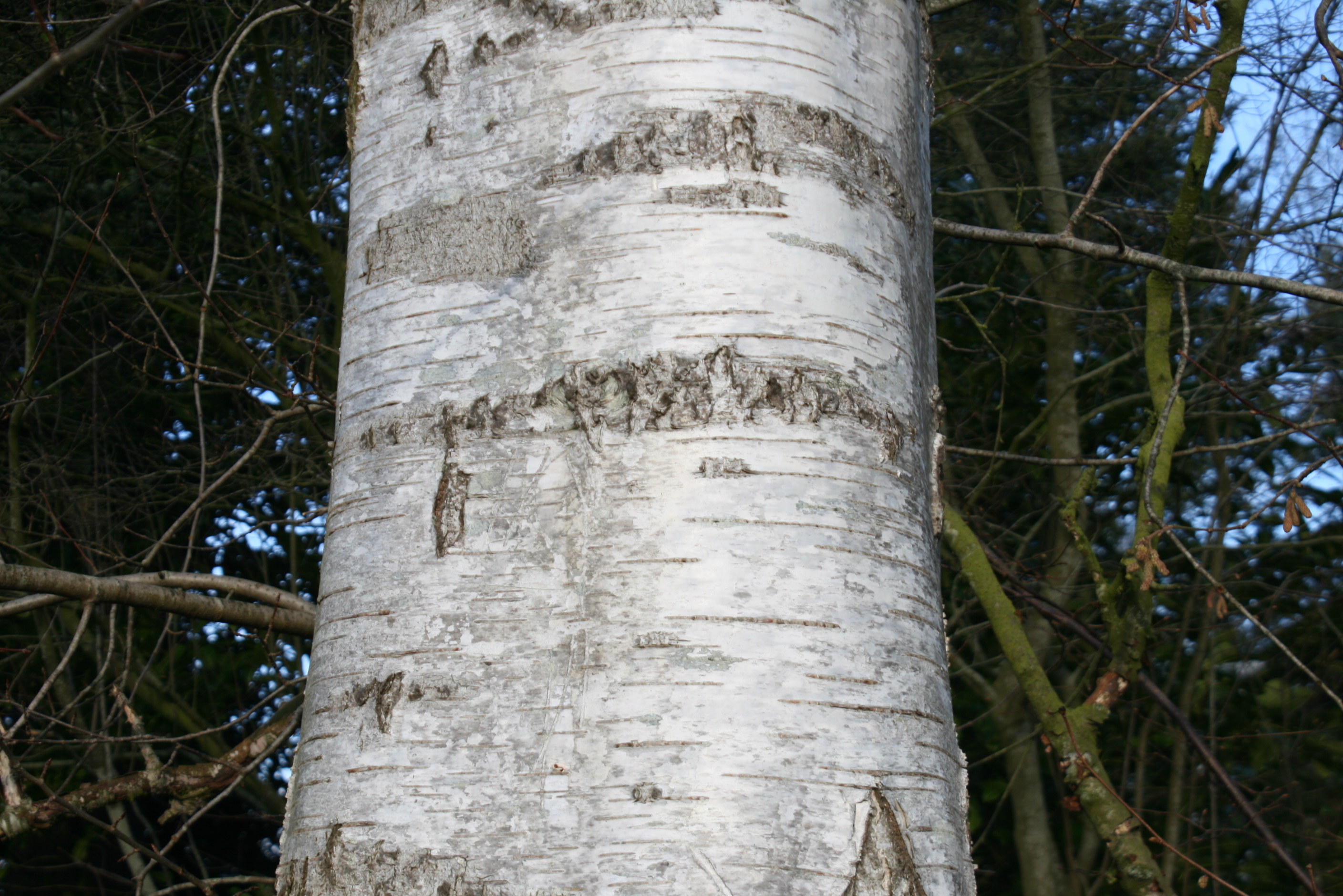 Die Bäume mit der markantesten Rinde sind wohl die Birken. Besonders in Nord- und Osteuropa gibt es ganze Wälder aus den anspruchslosen und sehr frostharten Sandbirken (Betula pendula), die mit ihren weißen Stämmen die Landschaft prägen. In Gärten wird allerdings meist die Himalaya-Birke Betula utilis bevorzugt, deren Stamm noch "weißer" ist, das heißt weniger Bereiche mit schwarzer Rinde zeigt.